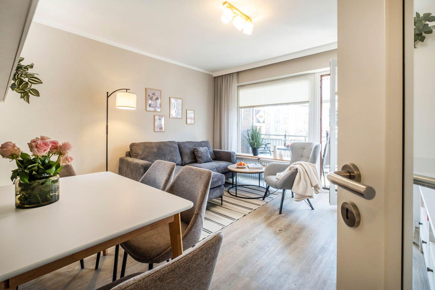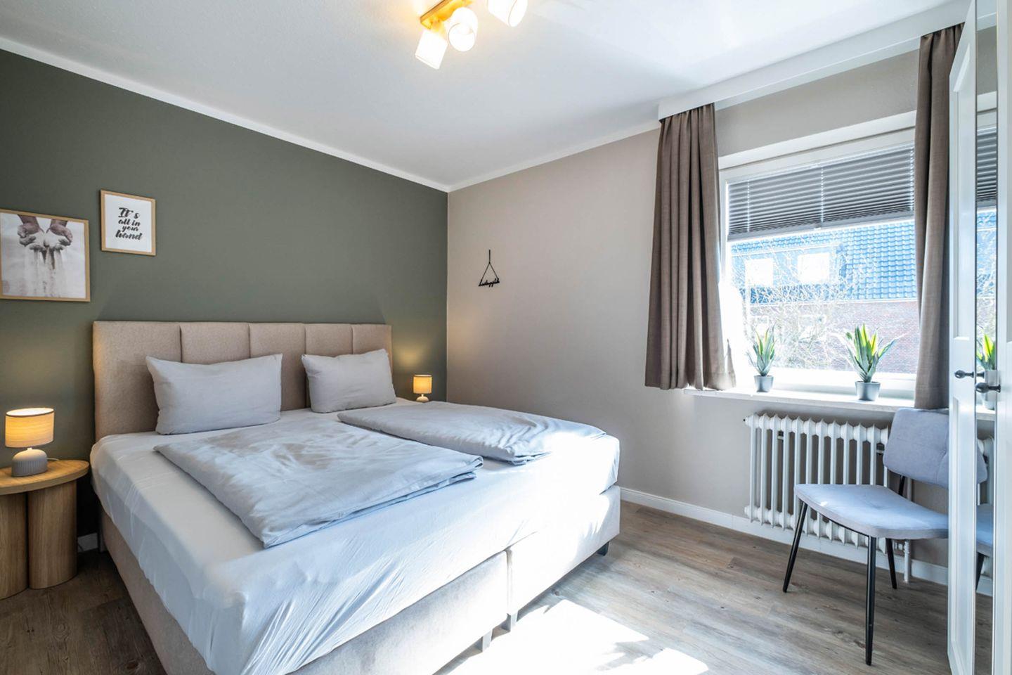 Die moderne Ferienwohnung Haus Am Anker Wohnung 4 im 1. Stock in Büsum bietet auf 47 m² Platz für bis zu 4 Personen mit zwei Schlafzimmern, offenem Wohn- und Essbereich, Balkon sowie voll ausgestatteter Küche. Sie verfügt über WLAN, Spülmaschine, Privatparkplatz und liegt nur 250 m vom Strand und Einkaufsmöglichkeiten entfernt.