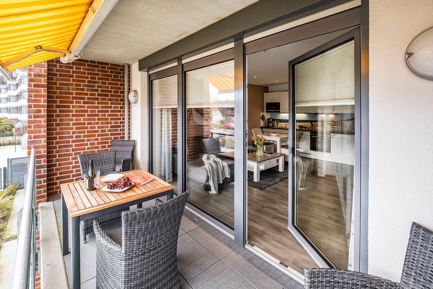 Entern Sie Ihre Kabine und stellen Sie Ihr Gepäck zunächst einfach beiseite, um vom Wohnzimmer oder südwestlichen Balkon aus den herrlichen Deichblick und die frische Brise zu genießen.