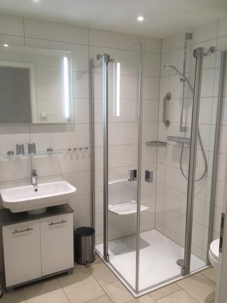 Sanitär: 2 komplette Duschbäder, je mit Handtuchheizung, je ein Haar-Föhn pro Duschbad, Kosmetikspiegel