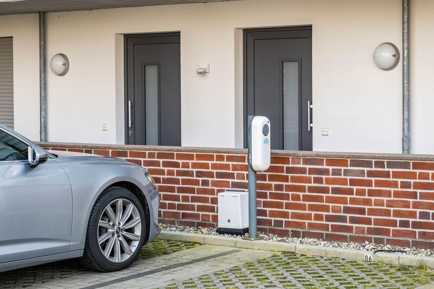 Dem Appartement ist ein PKW- Stellplatz direkt am Haus zugehörig. Bei diesem Stellplatz gibt zusätzlich es eine E-Ladesäule, die eine Möglichkeit zum kostenlosen Laden bietet.