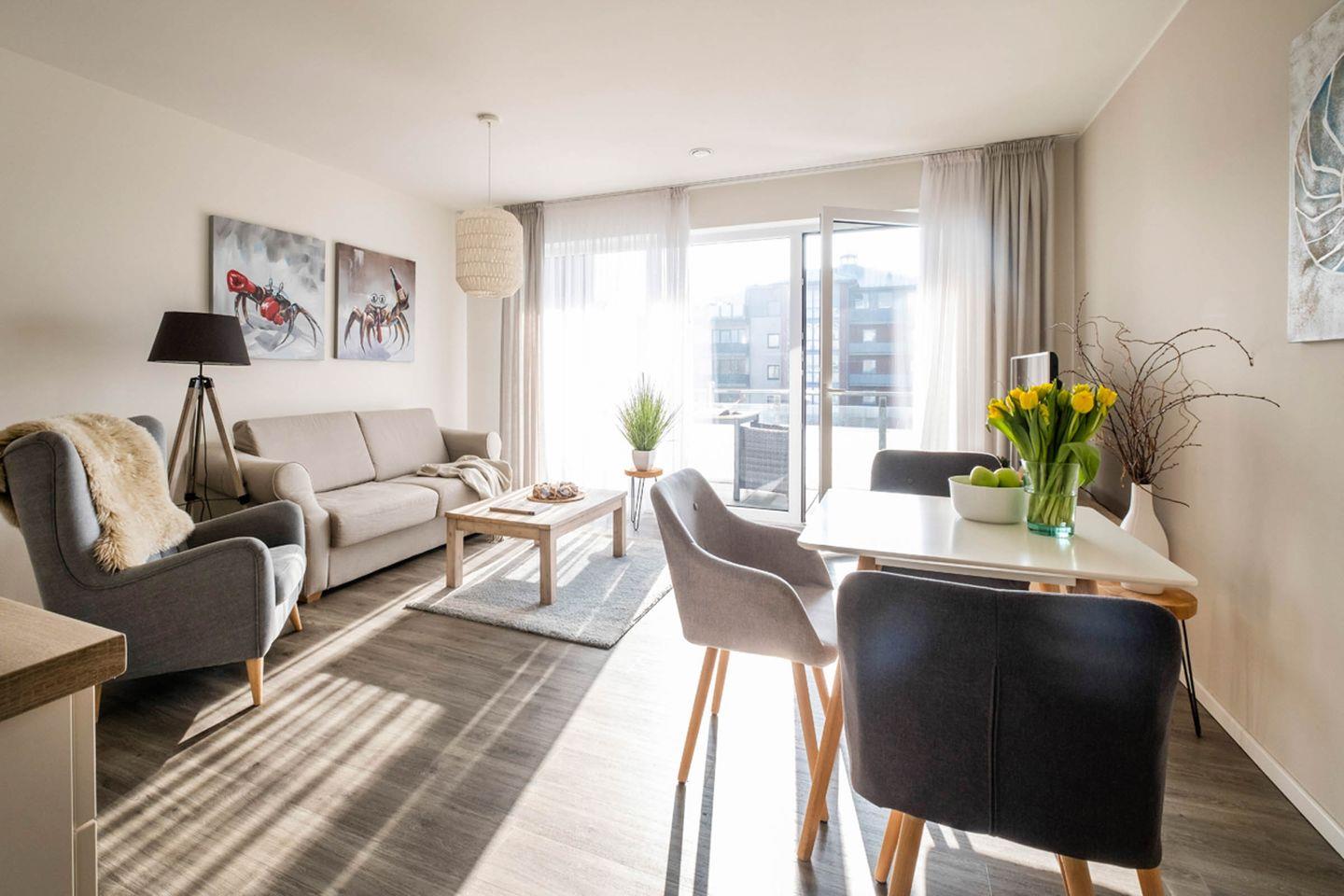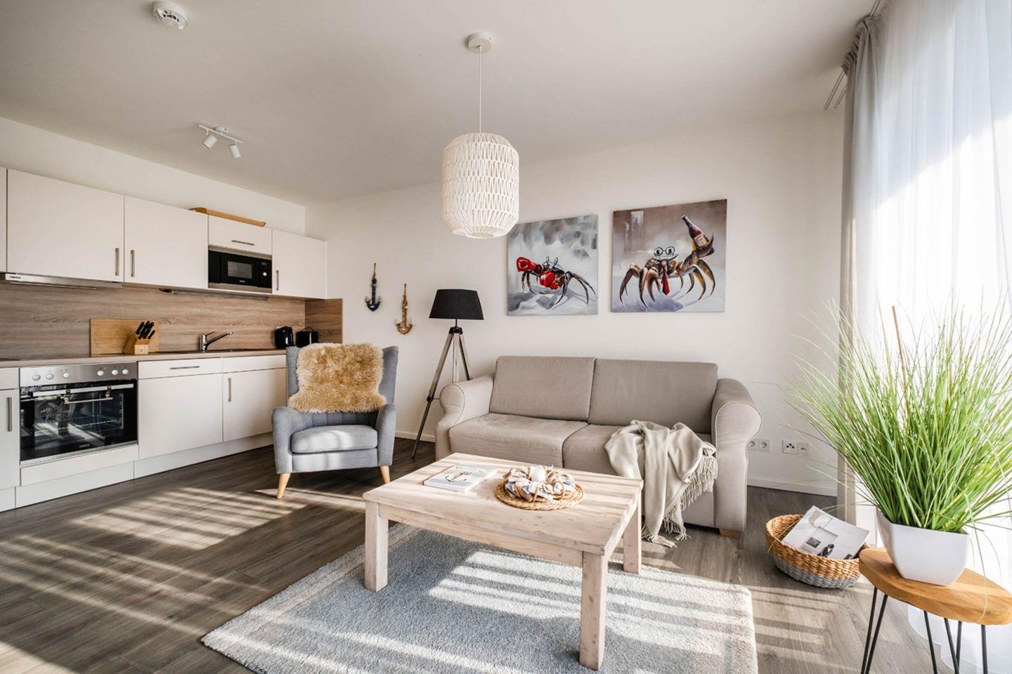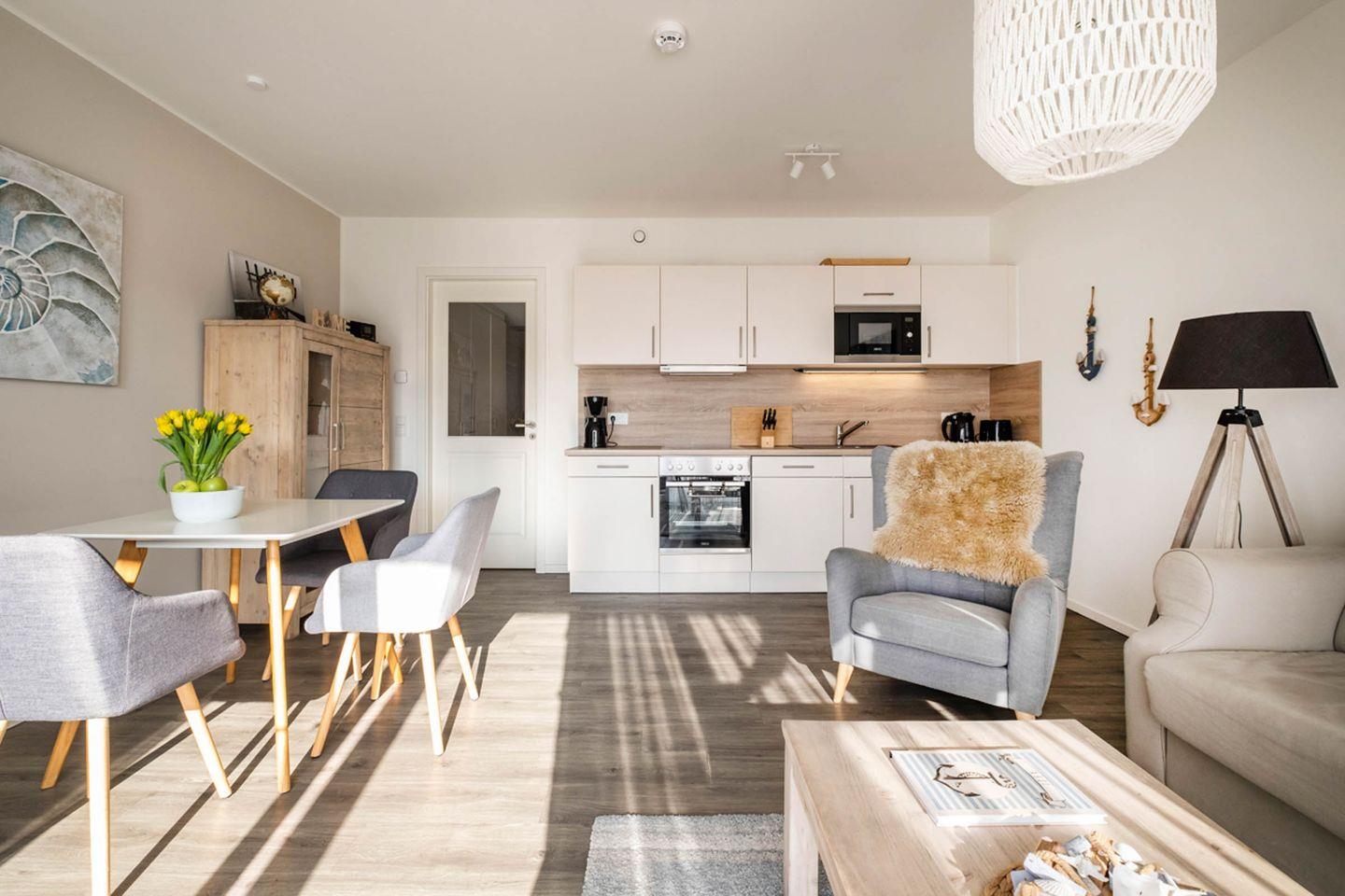 Das moderne Apartment Haus Strandläufer 2.2 (Küstennebel) in Büsum bietet auf 55 m² Komfort für zwei Personen. Zur Ausstattung gehören ein offener Wohn- und Essbereich mit voll ausgestatteter Küche, ein Balkon, WLAN, zwei TVs, Fußbodenheizung sowie Sauna- und Fitnessraumnutzung. In nur 250 m erreichen Sie Strand, Einkaufsmöglichkeiten und Restaurants.