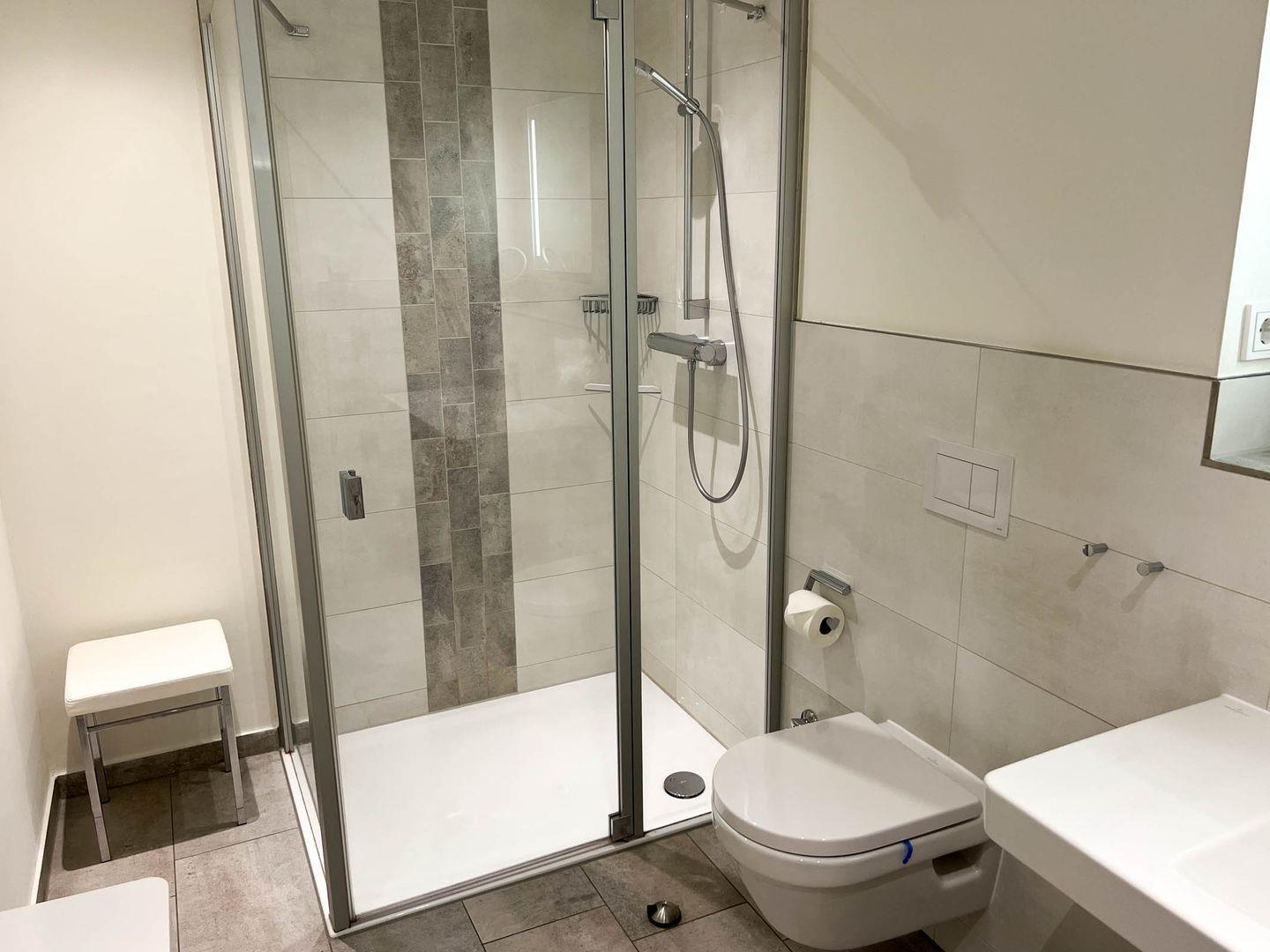 Sanitär: Duschbad, Handtuchheizung, Haar-Föhn