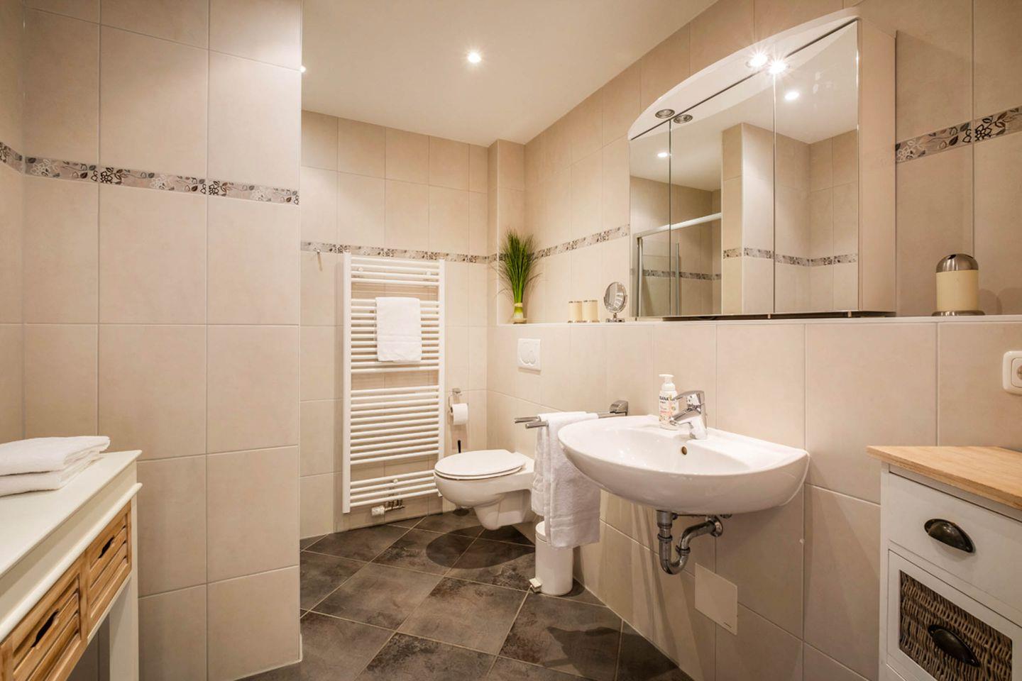 Sanitär: Duschbad mit ebenerdiger Dusche, Haar-Föhn, Kosmetikspiegel