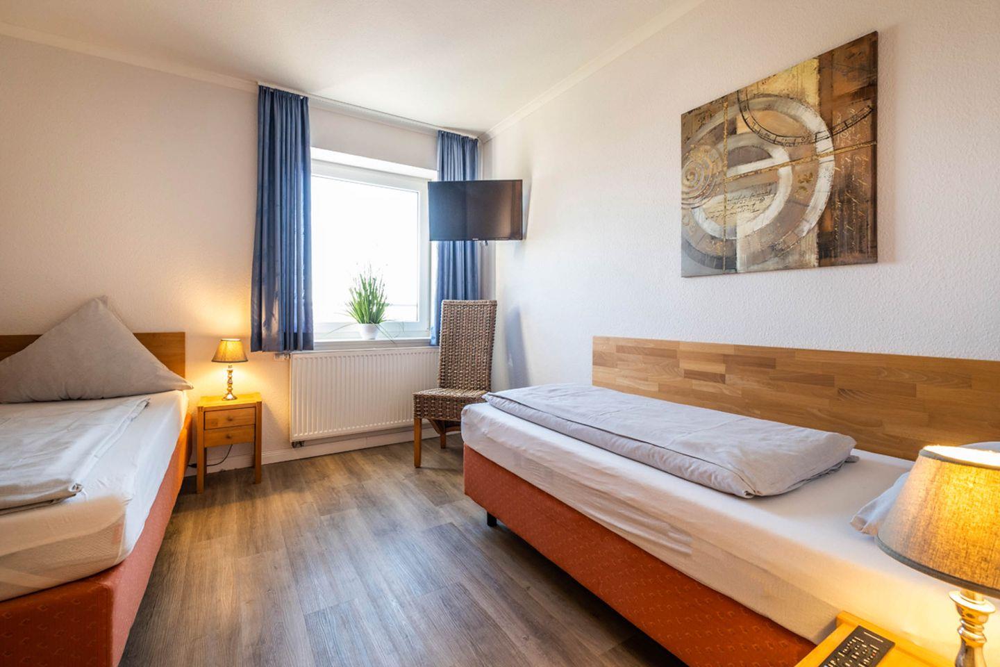 Das zweite Schlafzimmer hat zwei Einzelbetten und verfügt über einen Fernseher (Wandmontage). Alle unsere Appartements sind Nichtraucher-Appartements.