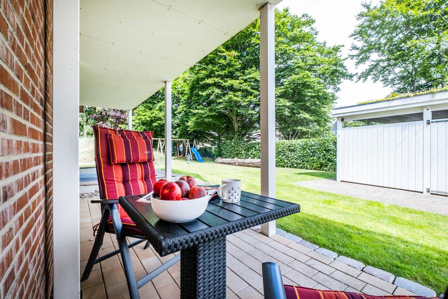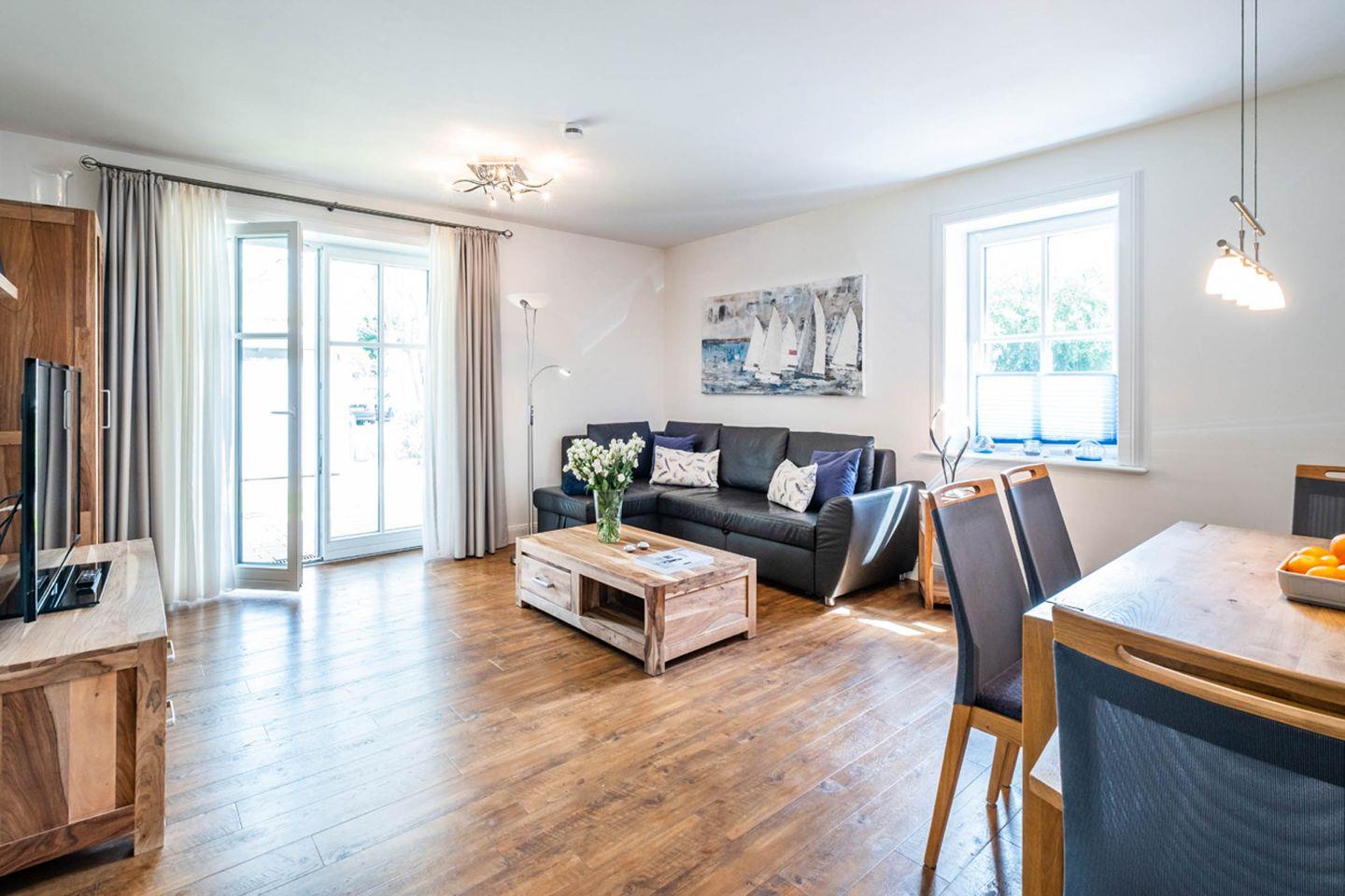 Das Appartement 1.5 befindet sich im Erdgeschoss mit Terrasse. Im Wohnraum finden Sie eine gemütliche Eckgarnitur. Die Küche und der Essbereich sind im Wohnbereich integriert. Das Schlafzimmer ist mit Doppelbett mit Komforthöhe und TV Wandmontage ausgestattet. Das Bad verfügt über eine barrierefreie Dusche. Fußbodenheizung befindet sich im ganzen Appartement. Auf die Terrasse gelangen Sie vom Wohnraum und Schlafzimmer, die in Nordlage liegt. Das Appartement verfügt über eine Gegensprechanlage mit Kamera. Im Keller finden Sie Waschmaschine und Trockner (gebührenpflichtig), Abstellraum für Fahrräder und einen gemeinschaftlichen Fitnessraum. Aufzug im Haus. Am Haus finden Sie einen weiteren abschließbaren Fahrradabstellraum und einen kleinen Spielplatz für unsere kleinen Gäste.