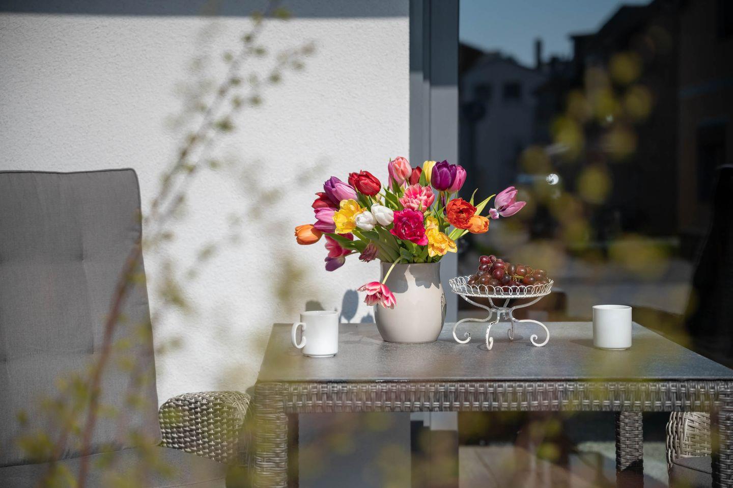 Die zum Wohnraum hin offene Küche lässt wenig Wünsche offen. Von der Zubereitung des Frühstücks samt Kaffee und Tee bis hin zum opulenten Mittag- oder Abendessen, jeder Genießer und Hobbykoch kommt hier ganz und gar auf seine Kosten. Der Esstisch ermöglicht ein gemütliches Zusammensitzen, auch nach dem Essen.
