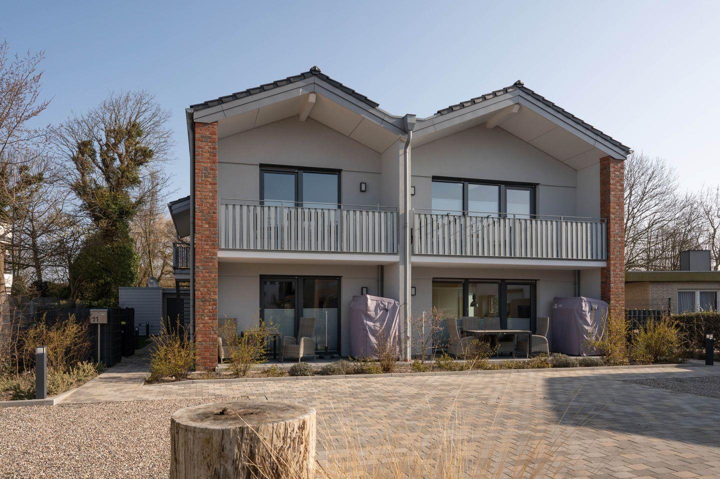 Der Neubau bietet ein gemütliches, naturverbundenes Ambiente durch die Kombination aus norddeutschem Charme und hochwertigem, nachhaltigem Design. Der Blick ins Grüne aus den beiden Schlafzimmern und die Möglichkeit, die Sonne auf der eigenen Terrasse zu genießen, steigert den Wohlfühlfaktor. Doch selbst wenn das gute Wetter mal ausbleibt, ist das kuschelige Sofa der perfekte Rückzugsort.