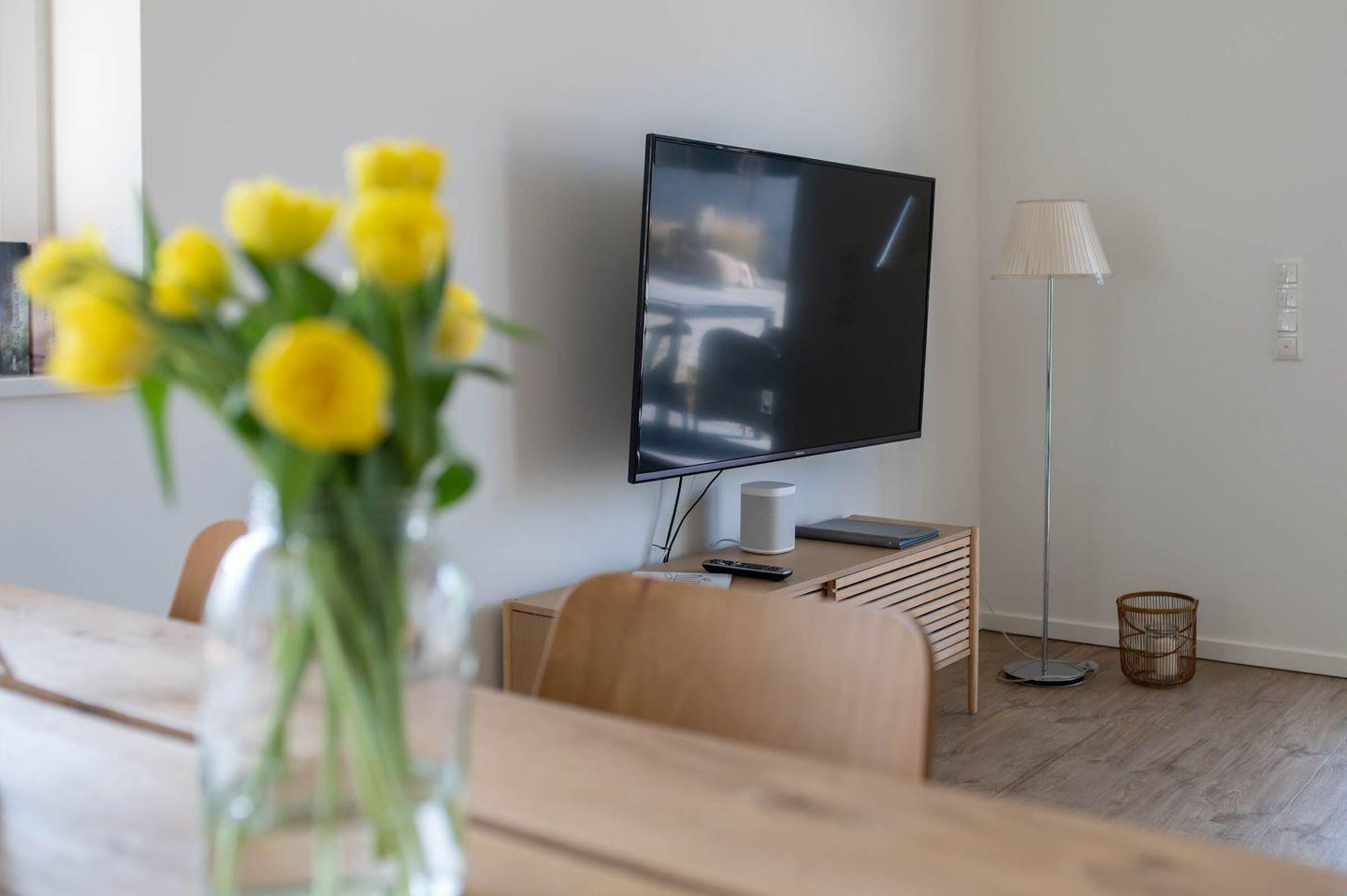Technik: Je ein Fernseher in beiden Schlafzimmern und dem Wohnzimmer, Sonos-Lautsprecher mit Bluetooth für Smartphone-Anschluss, kostenloses WLAN, Staubsauger