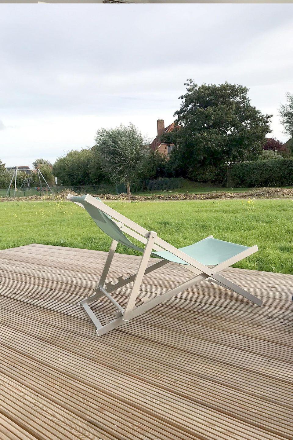 Südterrasse mit Terrassenmöbeln, Strandstühle und Weber-Grill
