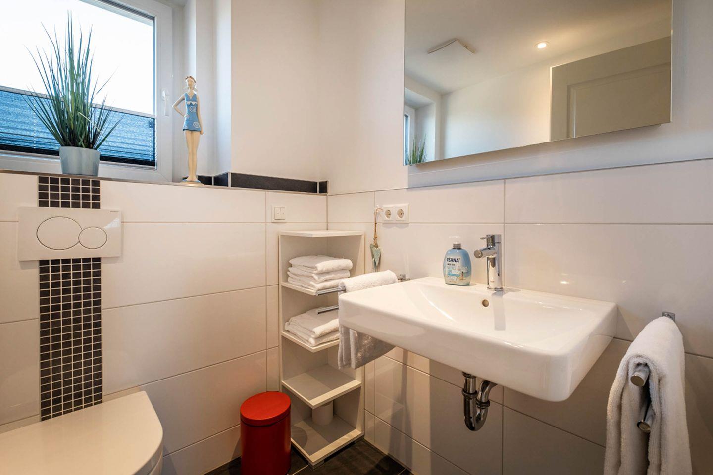 Sanitär: Duschbad mit ebenerdiger Dusche, Haar-Föhn, Kosmetikspiegel
