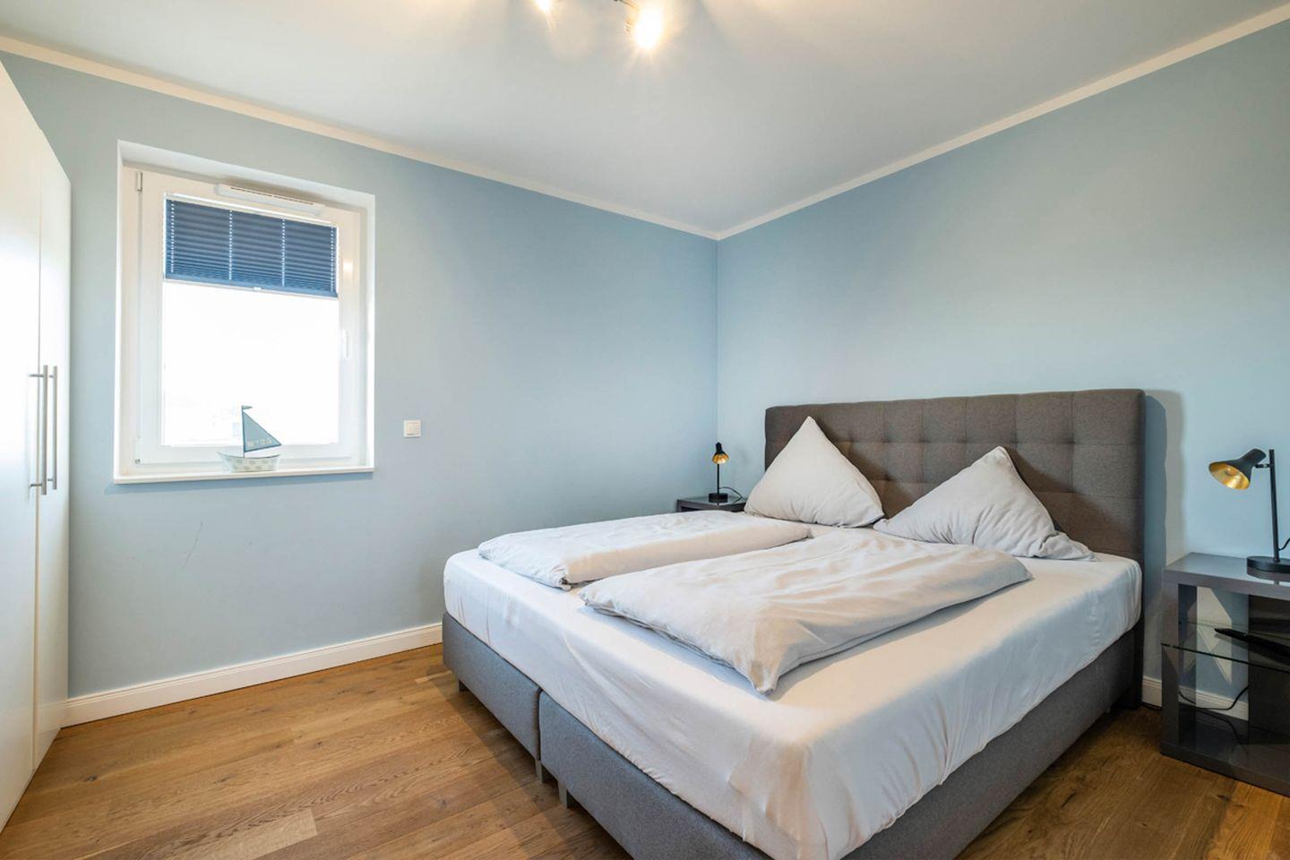 Beide Schlafzimmer sind mit einem Doppelbett und einem Wand-Montage-Fernseher ausgestattet. Das weiße Bett im Schlafzimmer, das auf dem Foto zu sehen ist, wird noch durch den Eigentümer Anfang 2021 ausgetauscht werden (es kommt ein Boxspringbett).
