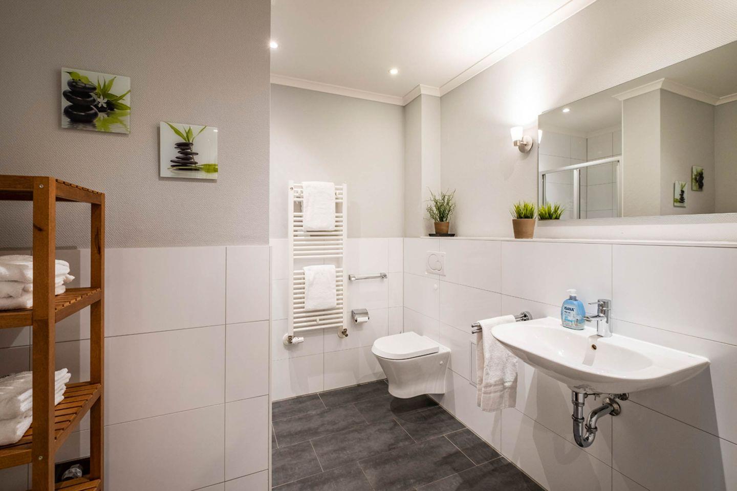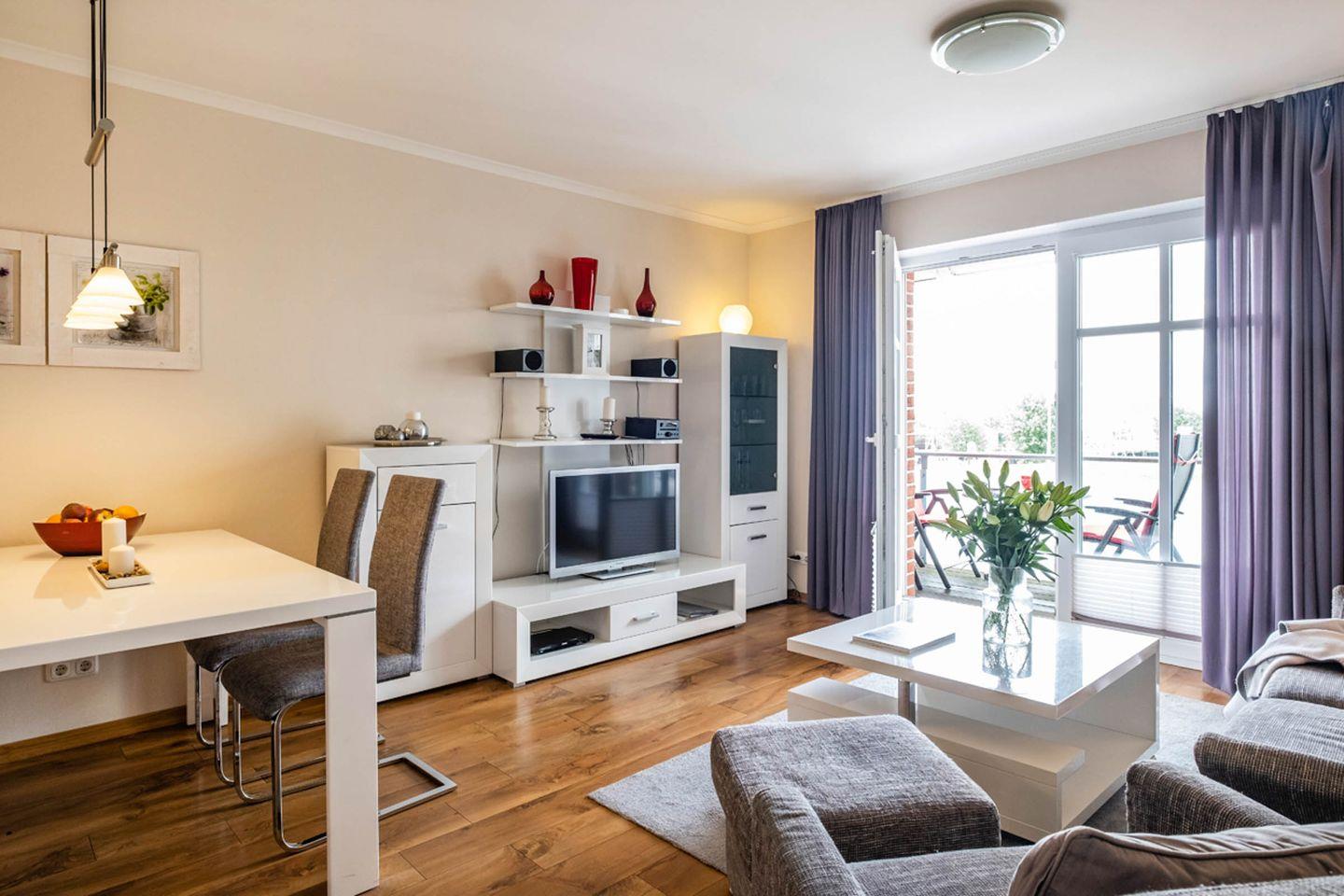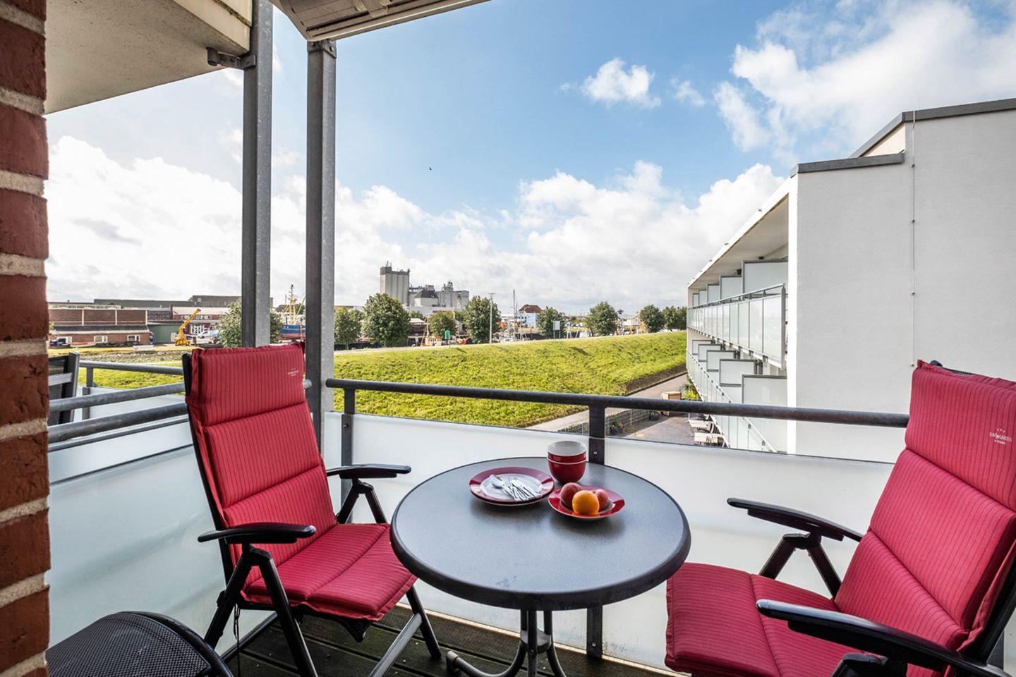 Das Appartement 2.2 mit Balkon liegt im zweiten Obergeschoss des Hauses Hafenresidenz. Im Wohnraum finden Sie eine gemütliche Couchgarnitur mit Sessel und Hocker. Die Küche und der Essbereich sind im Wohnbereich integriert. Das Schlafzimmer ist mit einen Doppelbett und TV-Wandmontage ausgestattet. Das geräumige Duschbad verfügt über einen Handtuchtrockner, Haltegriffe am WC und in der Dusche. Die Dusche hat eine kleine Einstiegskante. Fußbodenheizung im ganzen Appartement. Vom Wohnzimmer gelangen Sie auf den Balkon, der in Südwestlage liegt. Das Appartement verfügt über elektrische Außenjalousien und über eine Gegensprechanlage mit Kamera. Im Erdgeschoß des Hauses finden Sie Waschmaschine und Trockner (gebührenpflichtig) und einen Abstellraum für Fahrräder. Das Haus verfügt über einen Aufzug.
