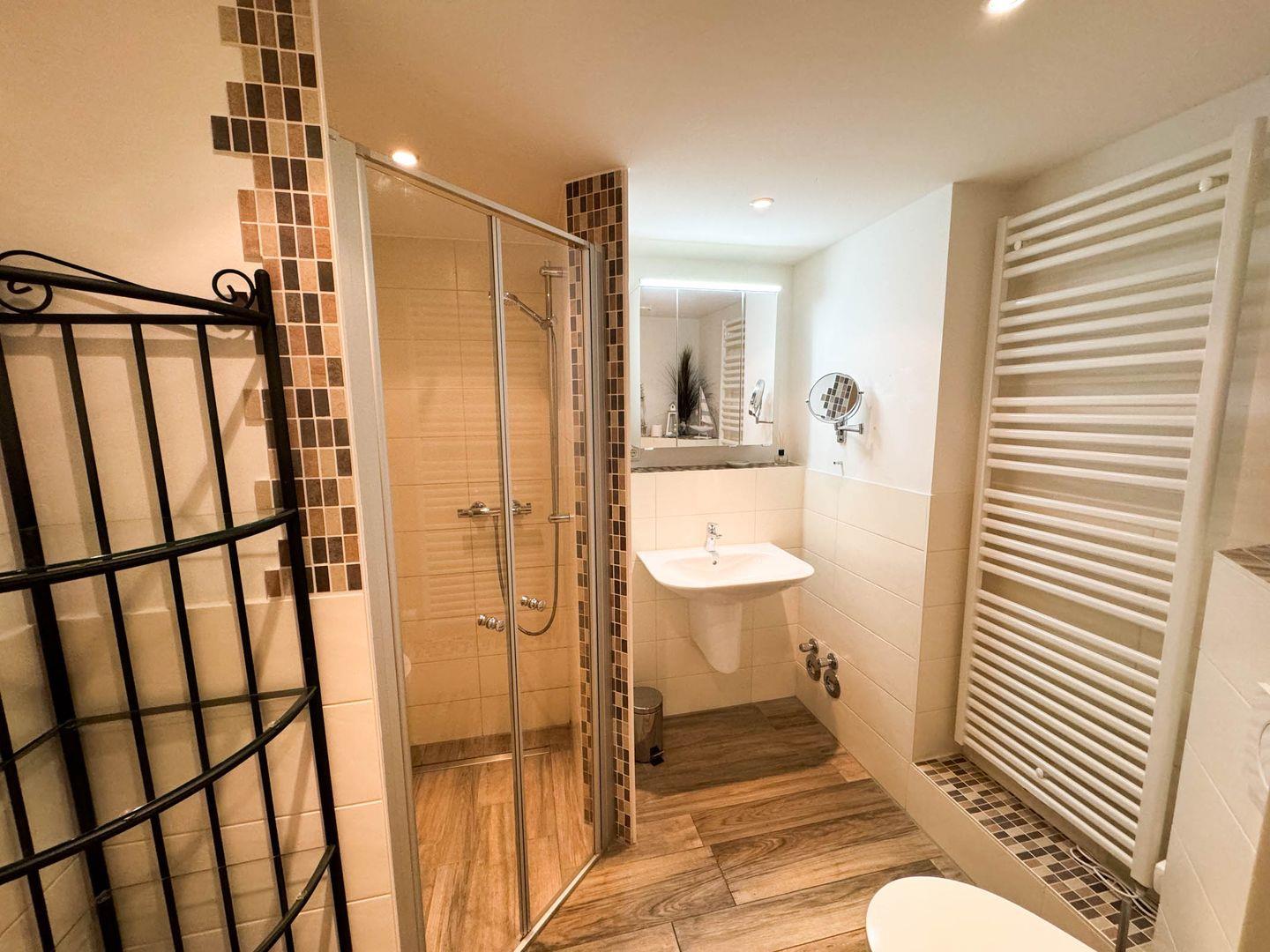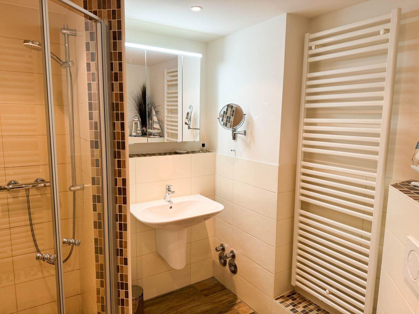 Sanitär: Duschbad, Kosmetikspiegel, Föhn