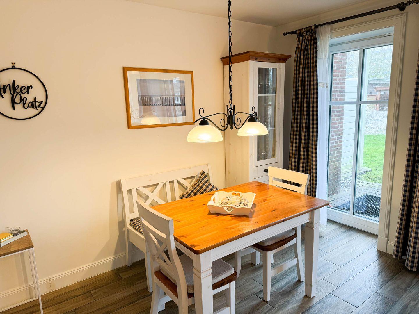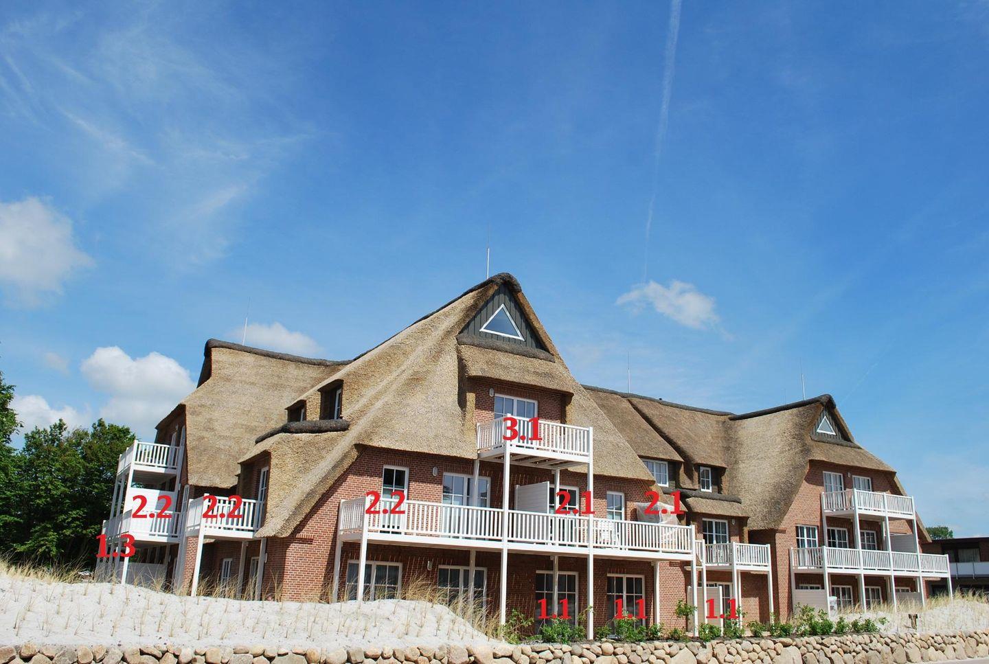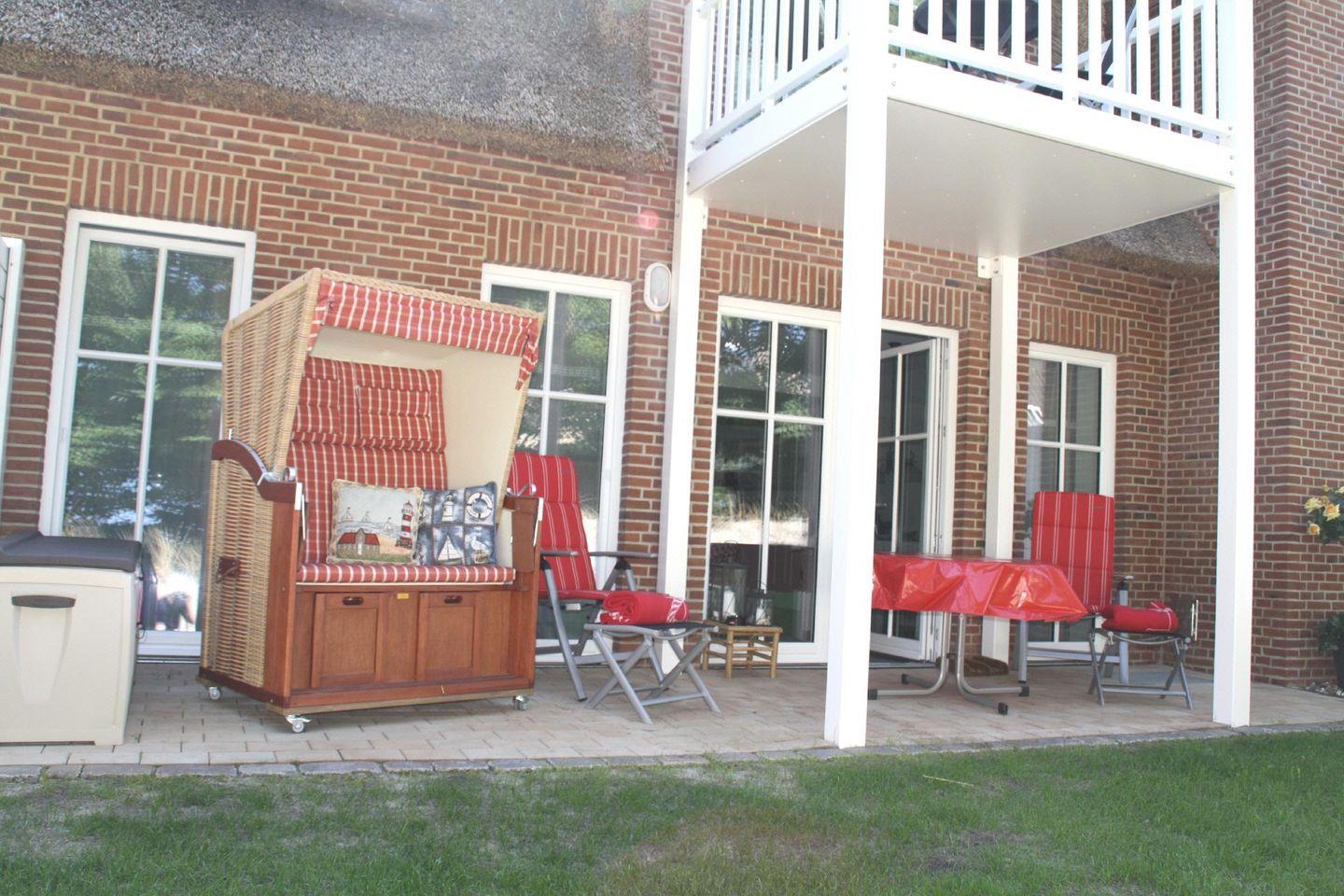 Das Apartment hat eine Größe von 62 m² und befindet sich im Parterre eines gepflegten Reetdach-Gebäudes. Es verfügt über ein helles und geräumiges Wohnzimmer, das harmonisch mit einer offenen Küche verbunden ist. Hier finden Sie alle Kochutensilien sowie einen Herd mit Ceranfeld, einen Backofen, eine Spülmaschine und eine Mikrowelle – ideal für die Zubereitung von köstlichen Mahlzeiten. Der Essbereich lädt zum gemeinsamen Schlemmen und Verweilen ein. Das Wohnzimmer ist mit einem gemütlichen Sofa und Sessel ausgestattet, was den perfekten Rahmen für einen entspannten Fernsehabend mit zwei vorhandenen TVs bietet (einer im Wohnzimmer und einer im Schlafzimmer). Mit dem Smart-TV können Gäste perfekt Radio hören und streamen.