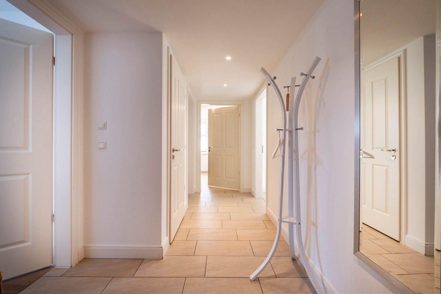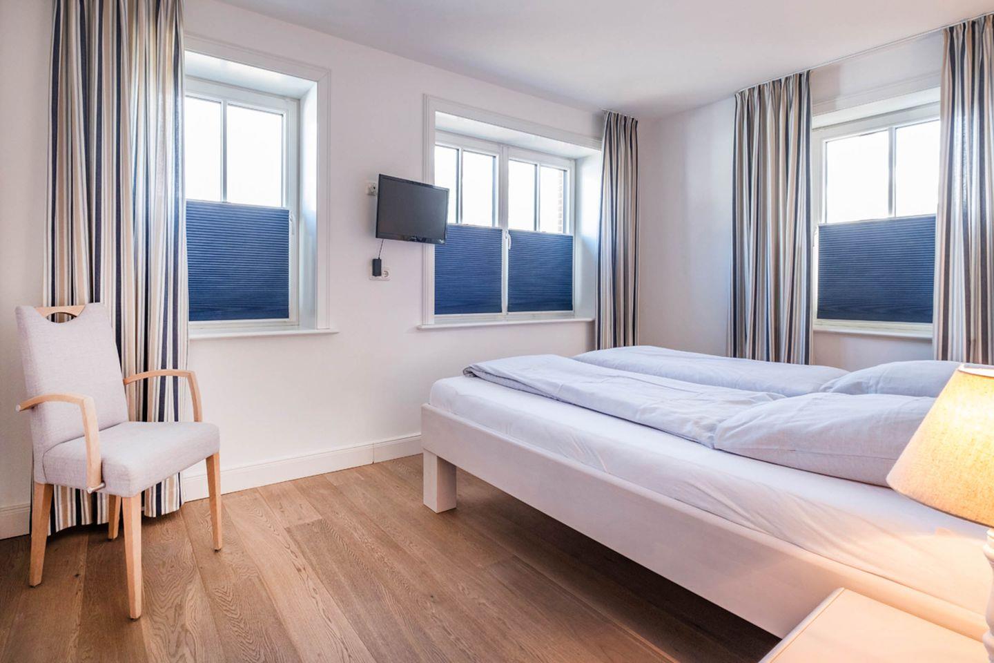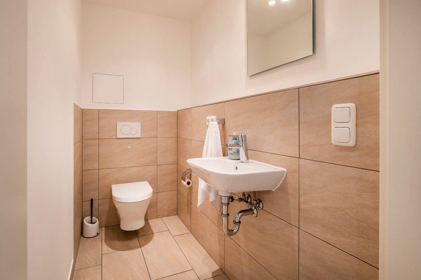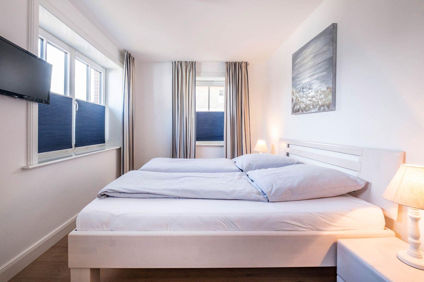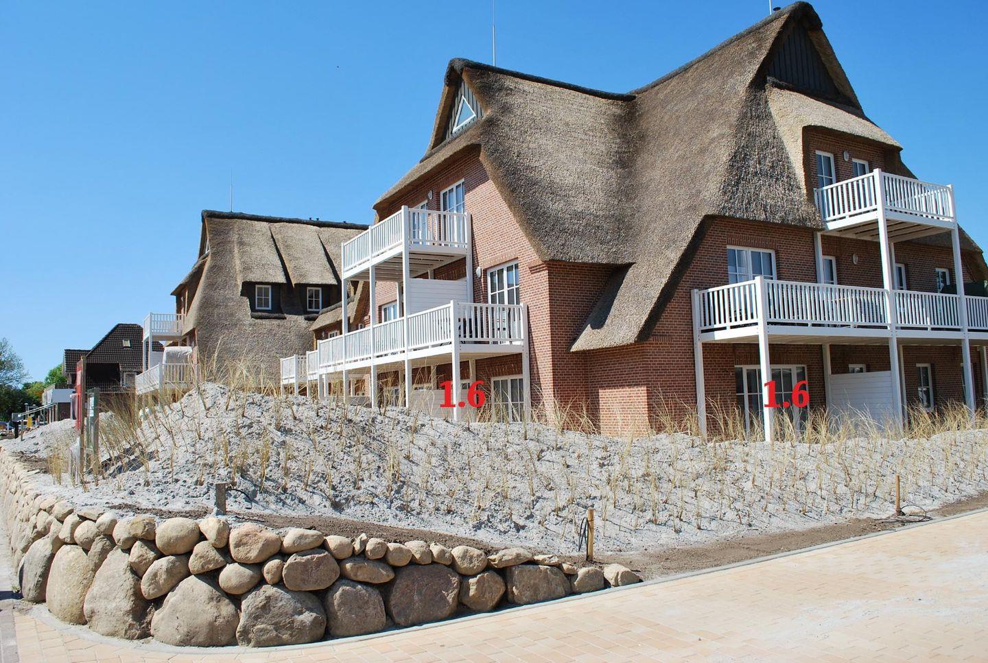 Das Appartement 1.6 befindet sich im Erdgeschoss mit Terrasse. Im Wohnraum finden Sie eine gemütliche Couchgarnitur, 2 Sessel mit Hocker. Die Küche und der Essbereich sind im Wohnbereich integriert. Beide Schlafzimmer sind mit Doppelbetten und TV ausgestattet. Das Bad verfügt über eine barrierefreie Dusche/WC. Das Appartement verfügt zusätzlich über ein Gäste- WC. Fußbodenheizung befindet sich im ganzen Appartement. Auf die beiden Terrassen gelangen Sie vom Wohnraum. Das Appartement verfügt über eine Gegensprechanlage mit Kamera. Im Keller finden Sie Waschmaschine und Trockner (gebührenpflichtig), Abstellraum für Fahrräder und einen gemeinschaftlichen Fitnessraum. Aufzug im Haus. Am Haus finden Sie einen weiteren abschließbaren Fahrradabstellraum und einen kleinen Spielplatz für unsere kleinen Gäste.
