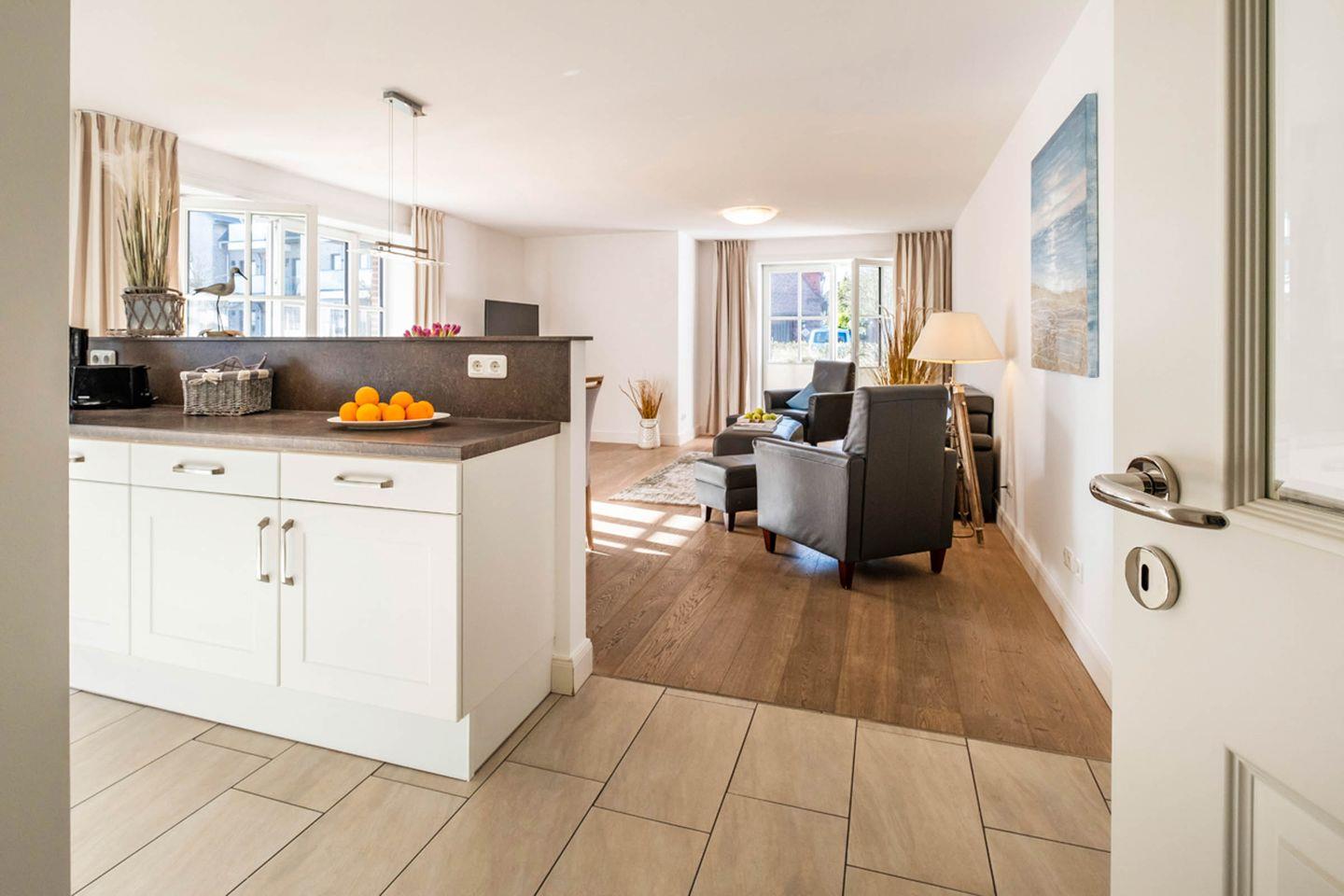 Das Büsumer Reethus Apartment 1.6 befindet sich im Erdgeschoss und bietet auf 100 m² modernen Komfort für bis zu vier Gäste. Die Unterkunft verfügt über zwei Schlafzimmer, eine offene Wohnküche, ein bodengleiches Duschbad, ein Gäste-WC, eine Terrasse mit Gartenmöbeln sowie WLAN. Ein Parkplatz, ein Aufzug und die Erlaubnis für ein Haustier runden das Angebot ab. Strand, Einkaufsmöglichkeiten und Restaurants erreichen Sie in wenigen Minuten zu Fuß.