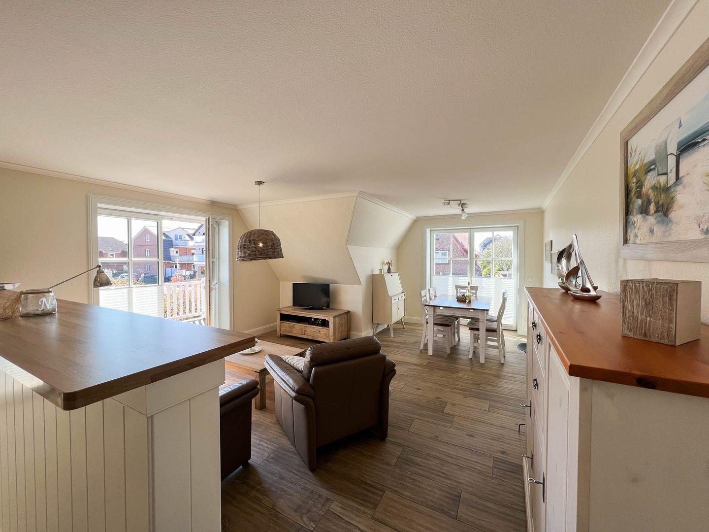 Das Büsumer Reethus Apartment 2.6 im 1. Stock bietet auf 92 m² eine moderne und komfortable Ausstattung mit offenem Wohn- und Küchenbereich, Balkon, zwei Schlafzimmern und einem Gäste-WC. WLAN, drei TVs, Fußbodenheizung sowie ein Privatparkplatz ergänzen das Angebot. Strand, Einkaufsmöglichkeiten und Restaurants sind nur 250 Meter entfernt.