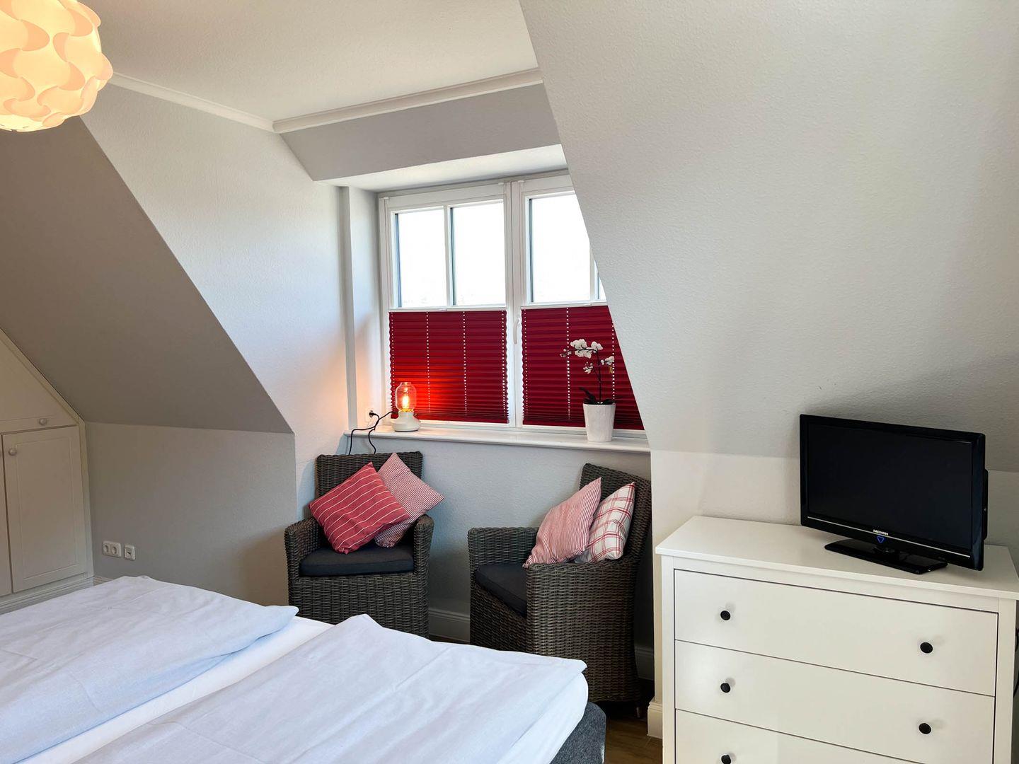 Das Appartement 2.6 befindet sich im I.OG mit Balkon. Im Wohnraum finden Sie eine gemütliche Couchgarnitur. Die Küche und der Essbereich sind im Wohnbereich integriert. Ein Schlafzimmer ist mit einem Boxspringbett in Komforthöhe und TV ausgestattet. Das zweite Schlafzimmer ist mit zwei zusammenstehenden Einzelbetten mit Komforthöhe und mit einem TV ausgestattet. Das Bad verfügt über eine barrierefreie Dusche/WC und Bidet. Das Appartement verfügt zusätzlich über ein Gäste- WC. Fußbodenheizung befindet sich im ganzen Appartement. Die beiden Balkone erreichen Sie vom Wohnraum . Das Appartement verfügt über eine Gegensprechanlage mit Kamera. Im Keller finden Sie Waschmaschine und Trockner (gebührenpflichtig), Abstellraum für Fahrräder und einen gemeinschaftlichen Fitnessraum. Aufzug im Haus. Am Haus finden Sie einen weiteren abschließbaren Fahrradabstellraum und einen kleinen Spielplatz für unsere kleinen Gäste.