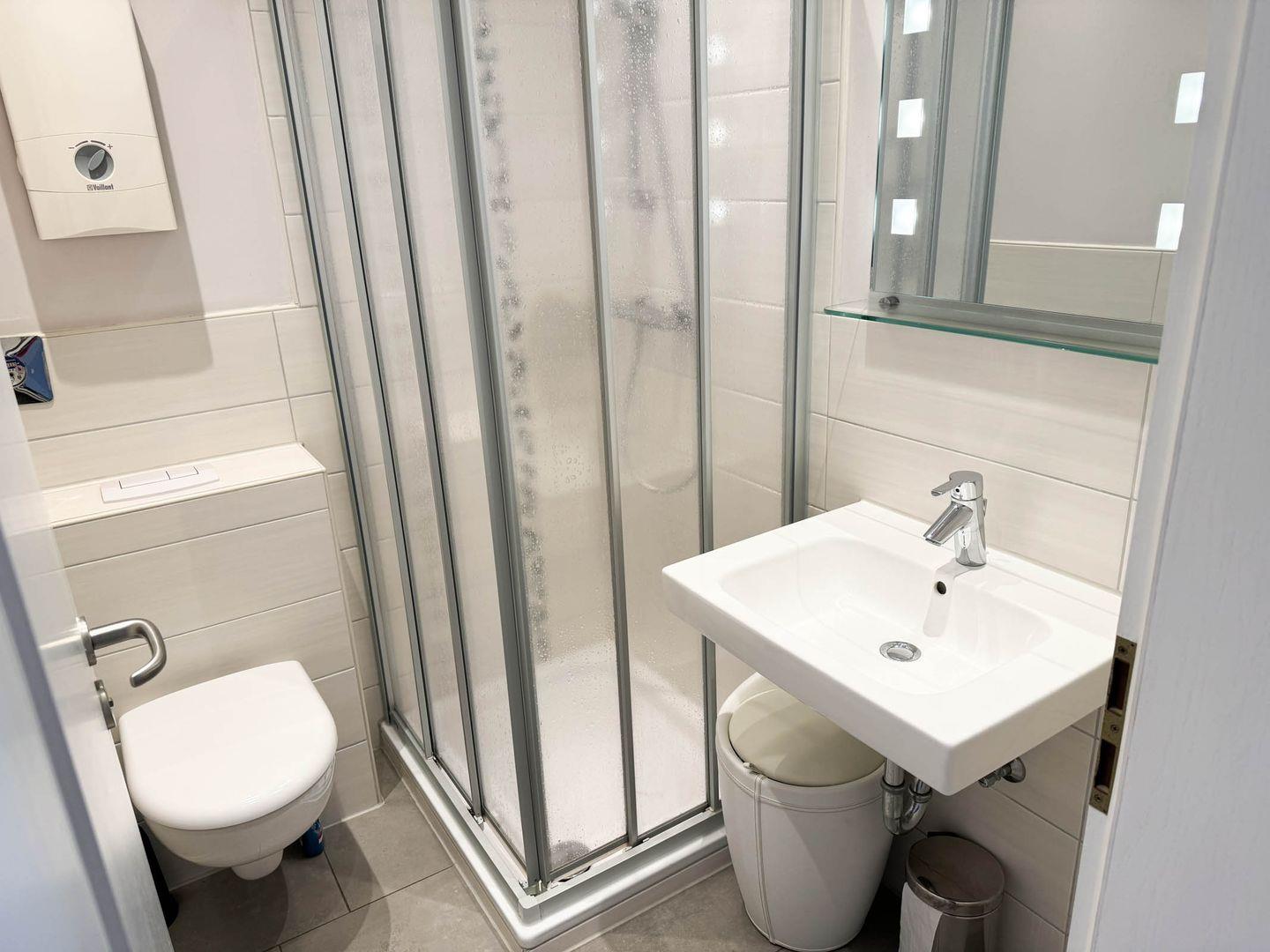 Küchenzeile: Cerankochfeld ( 2 Platten), Mikrowelle, Geschirrspüler, Kühlschrank mit Gefrierfach, Kaffeemaschine, Wasserkocher, Toaster