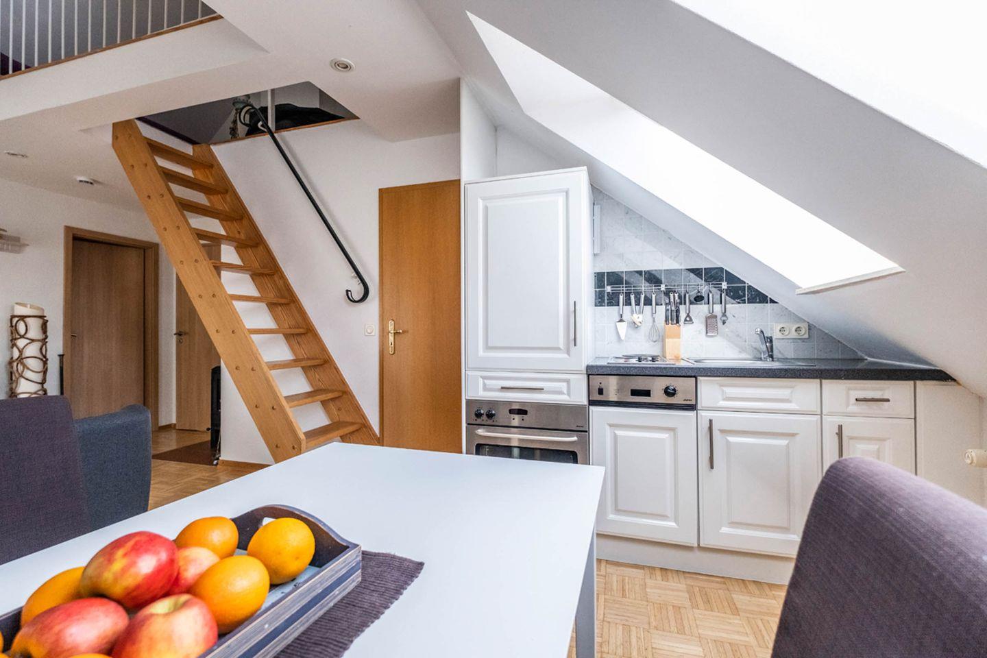 Diese Wohnung ist nur über eine steile Treppe zu erreichen und verfügt über keinen Aufzug.