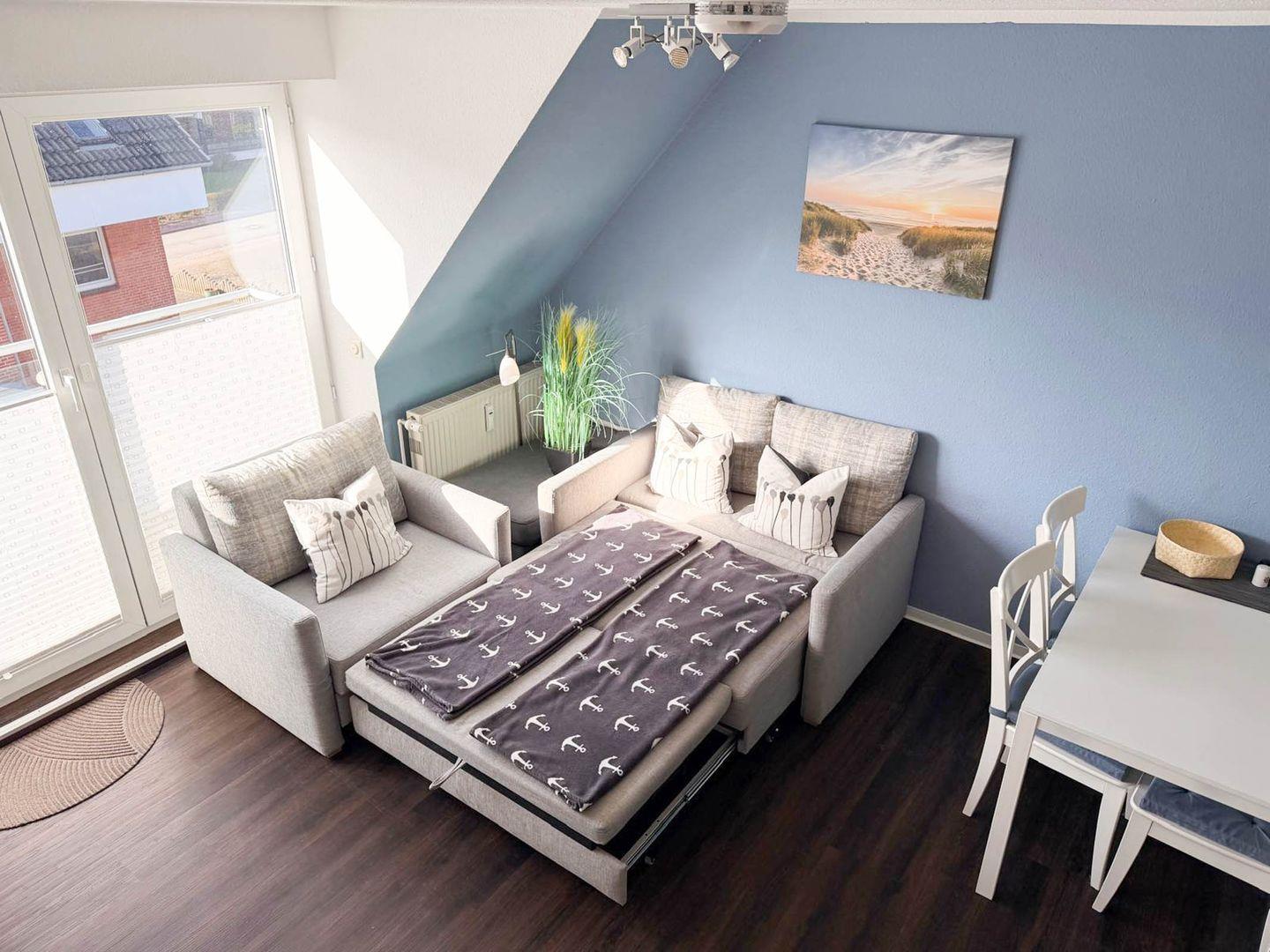 Die modern ausgestattete Wohnung Haus Seemeile 3.10 in Büsum überzeugt im 3. Stock (über 2 Etagen) mit offener Küche, Wohnzimmer und Balkon. Sie bietet ein separates Schlafzimmer, ein Badezimmer mit Dusche und Gäste-WC sowie WLAN, zwei TVs und Spülmaschine.