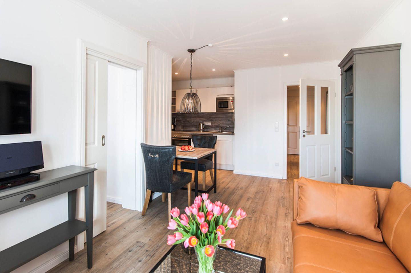 Das 50 m² Apartment ist geeignet für 2 Personen und befindet sich in dem Haus "Weisse Villa" direkt am Büsumer Hafen.