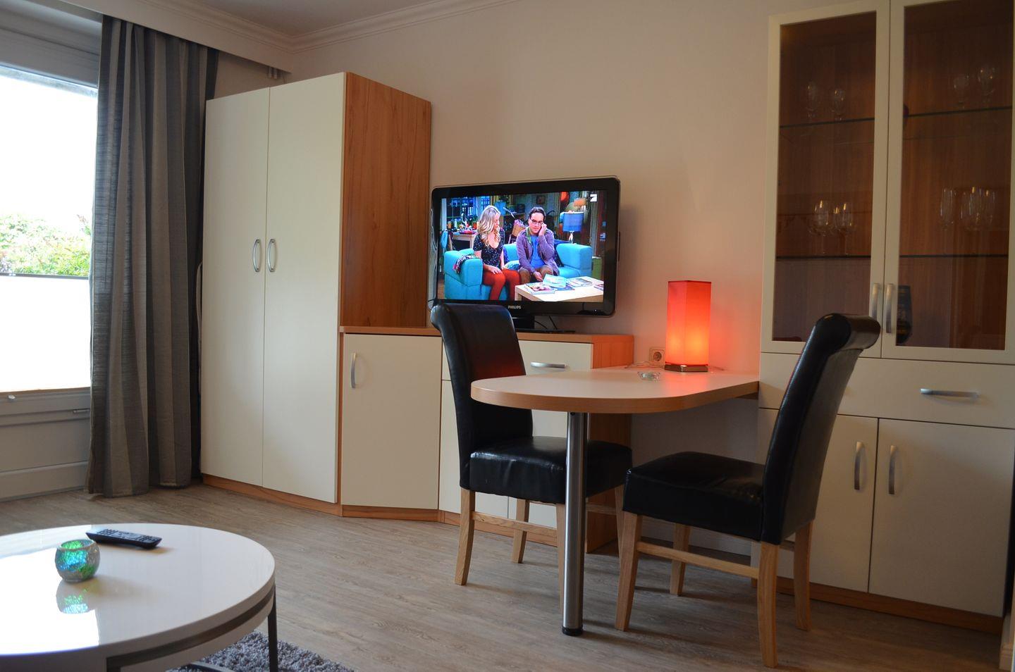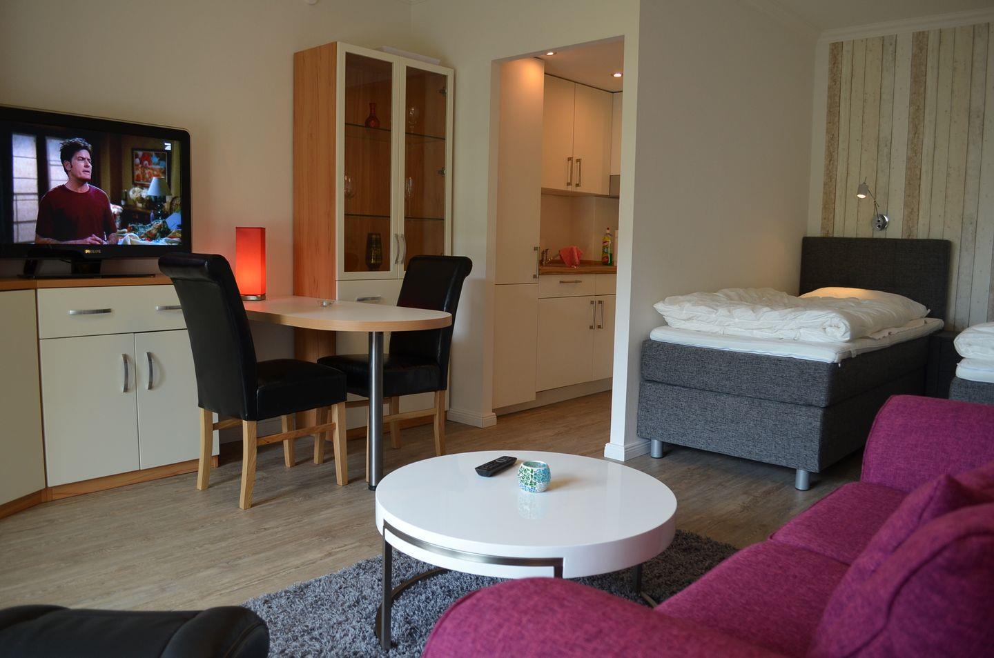 Die Wohnung ist sehr gemütlich und modern mit einem Sat-TV eingerichtet. Sie bietet genügend Platz für bis zu zwei Personen und ist somit optimal für z.B. Paare oder Alleinreisende.