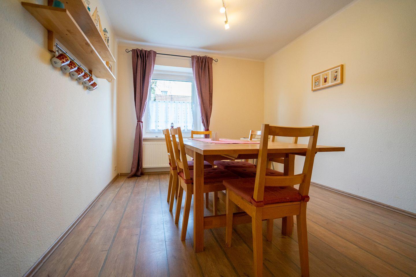 Das Ferienhaus Junker ist ca. 90qm groß und komplett ausgestattet. Laminatboden und Fliesen