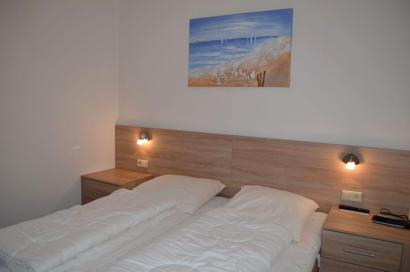 Aufgeteilt ist sie in einen offenen Wohn- und Essbereich mit einer gut ausgestatteten Küchenzeile, ein komfortables Schlafzimmer mit Doppelbett sowie ein Bad mit großzügiger Dusche.