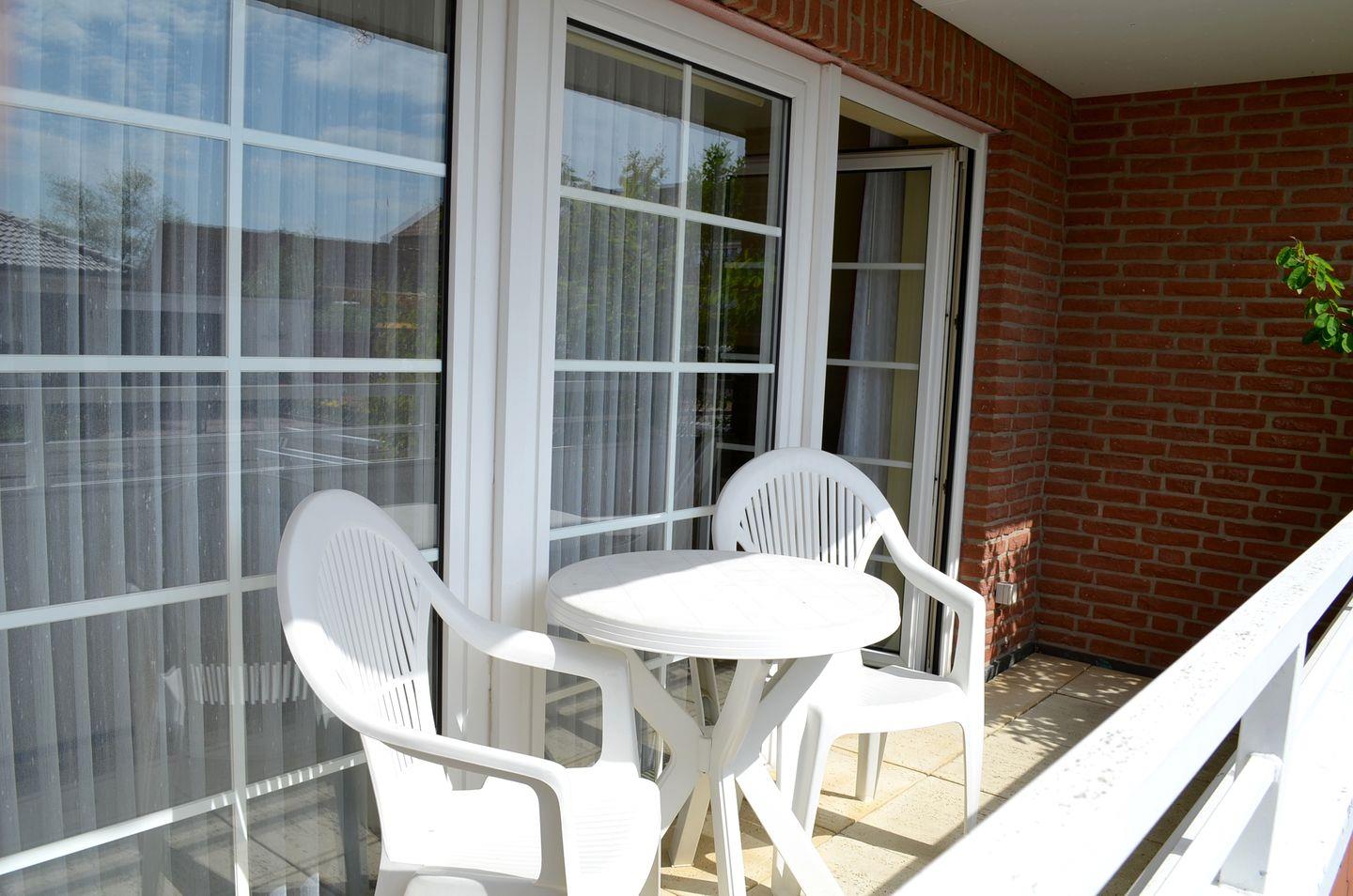 Gut zu wissen: Die Wohnung verfügt über einen schönen sonnigen Balkon in Richtung Meer und befindet sich im Erdgeschoss (neben der Tiefgarageneinfahrt).