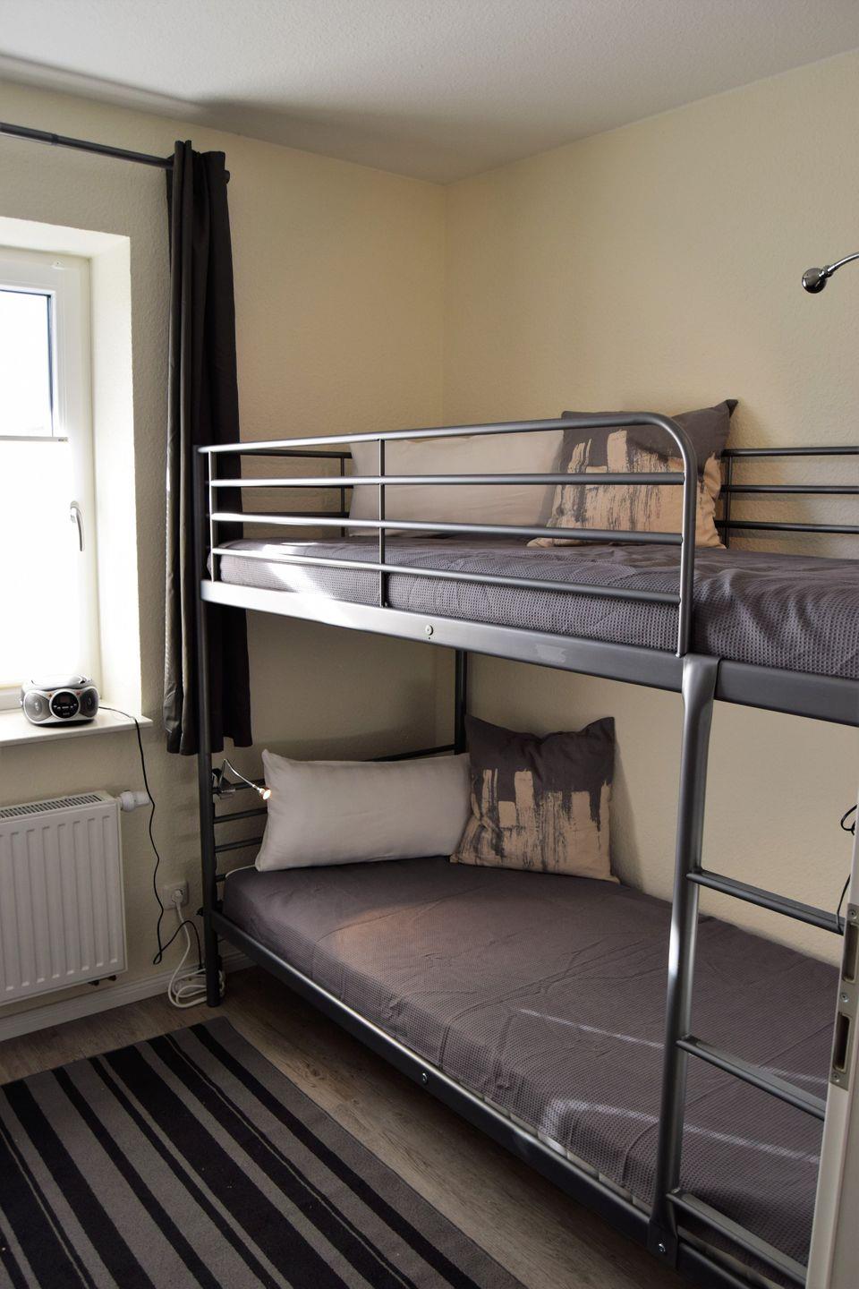 Die beiden Schlafzimmer sind mit einem Doppelbett und zwei Einzelbetten ausgestattet – perfekt für einen tollen Familienurlaub.