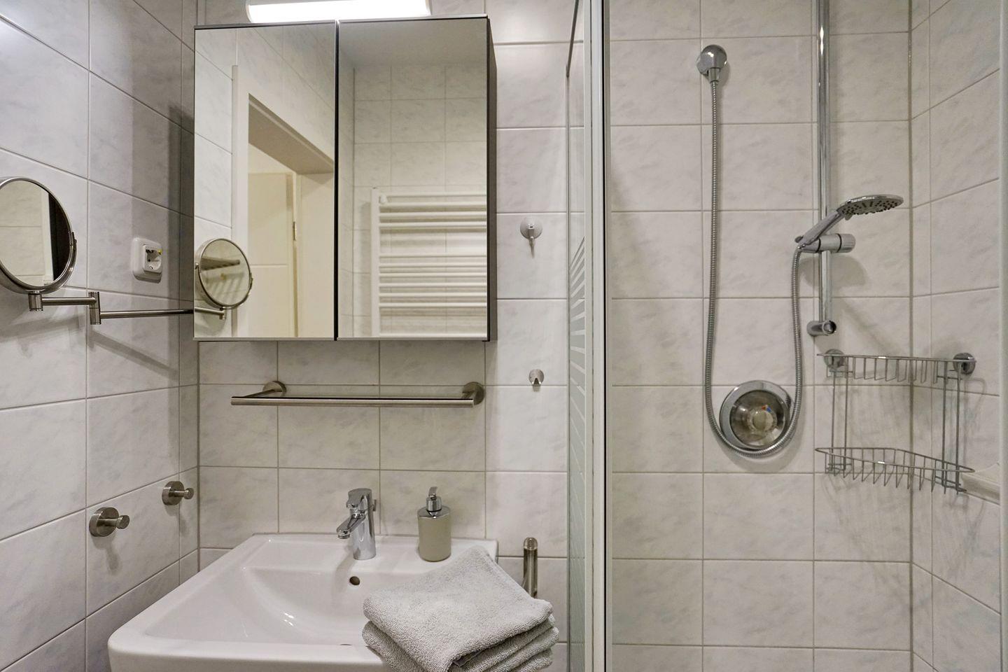 großzügigen Wohnraum, einem Schlafraum, einem Duschbad und einer kleinen Küche. Die