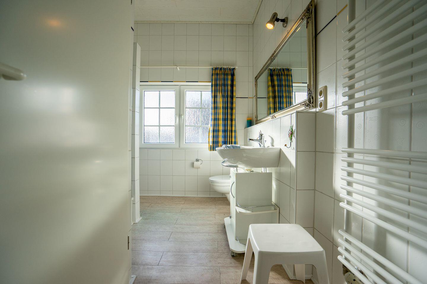 Beide Badezimmer verfügen über Dusche, WC, Spiegel und Fenster.