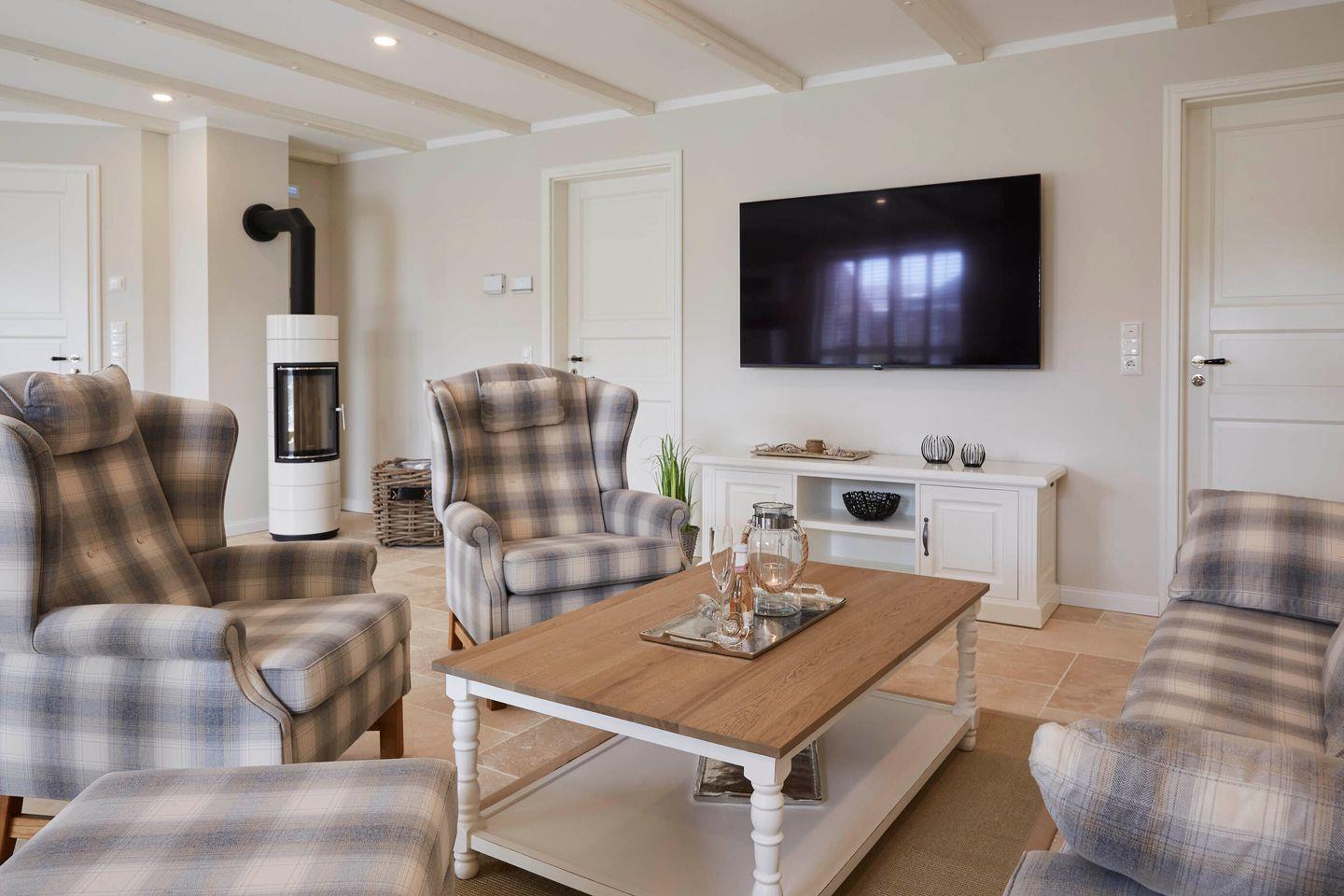 Schon von außen erkennen Sie die typisch traditionelle Reetdachbauweise der Region, die durch Elemente, wie die ,,Klönschnacktür‘‘, den stilechten und handgefertigten Holzfenstern mit Sprossen, den Shuttern, der gemauerten Katzentreppe auf dem Dach und vielem mehr zu erkennen ist.