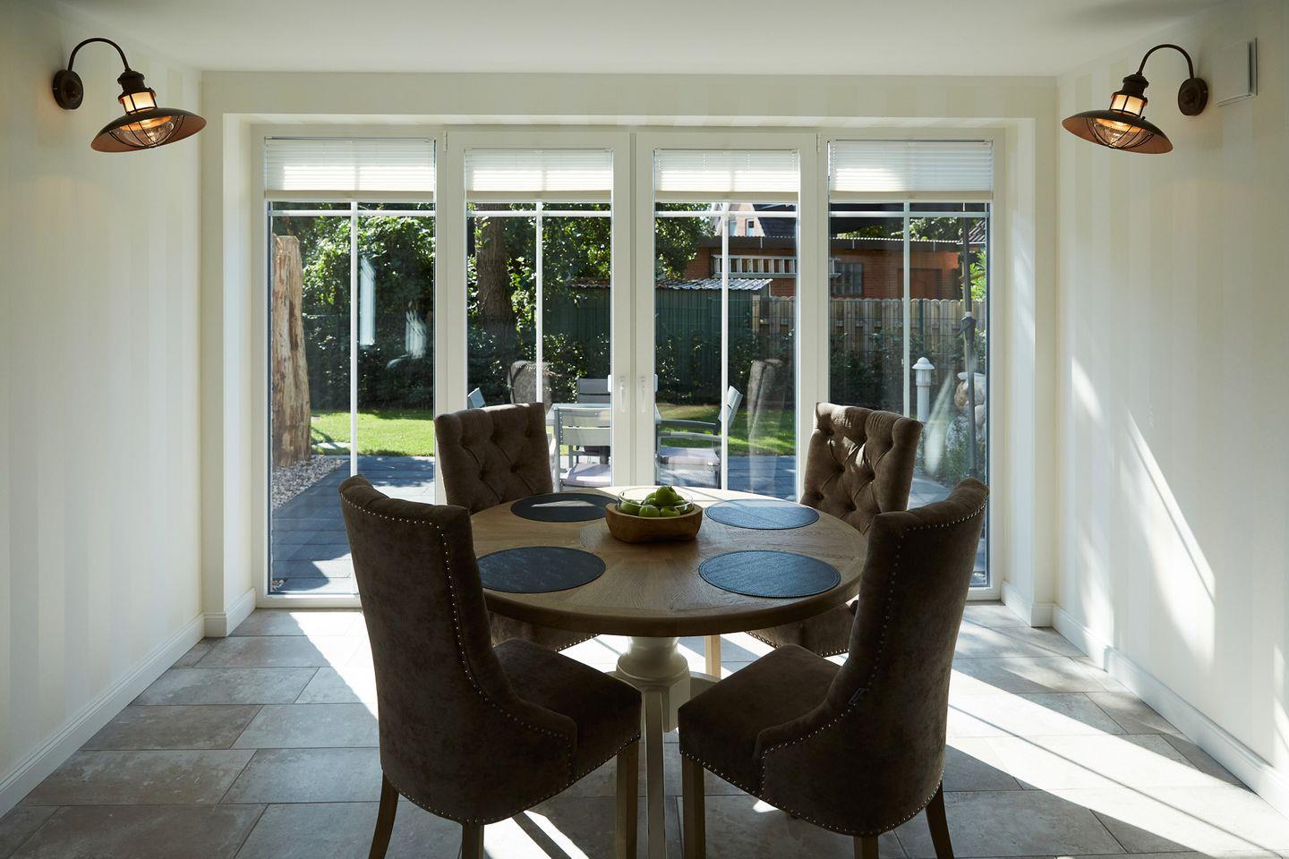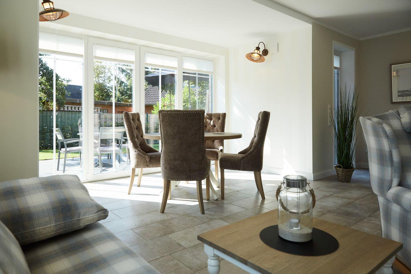Haus Daglind Apartment 1 in Büsum: modernes 72 m² Apartment mit 2 Zimmern, 1 Schlafzimmer und Platz für 2 Personen. Offene Küche zum Wohnzimmer mit Induktionsherd, Backofen, Mikrowelle und Spülmaschine. Terrasse, private Sauna im Badezimmer, WLAN, 2 TVs. Privatparkplatz, Kinder willkommen, 1 Haustier erlaubt. Waschmaschine/Trockner gemeinschaftlich.