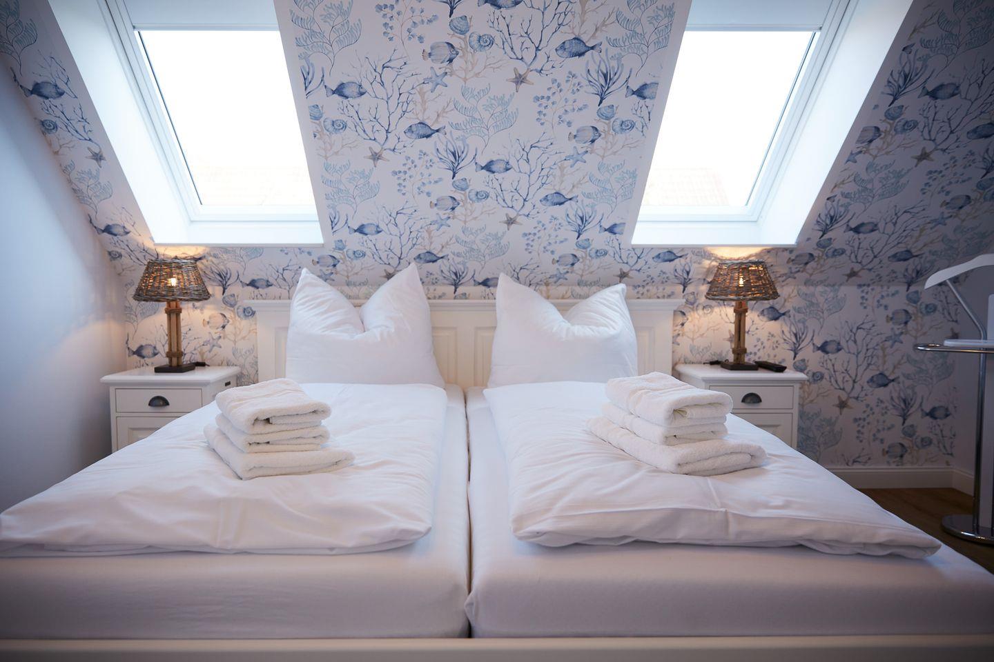 Haus Daglind Apartment 4: modernes, 83 m² großes 3-Zimmer-Apartment im 1. Stock für bis zu 4 Gäste. Zwei Schlafzimmer, offener Wohn-/Essbereich mit 3 TVs und WLAN sowie vollausgestattete Küche, sowie Balkon und gemeinschaftliche Fasssauna, bodengleiche Dusche, Privatparkplatz. 1 Haustier erlaubt.