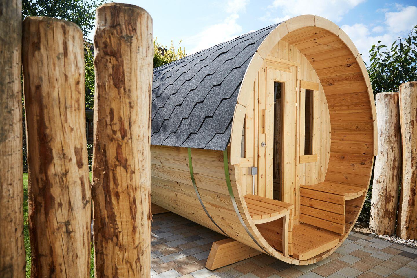 Ein finnisches Saunafass ( gemeinschaftliche Nutzung ) steht im Garten für Sie bereit.
