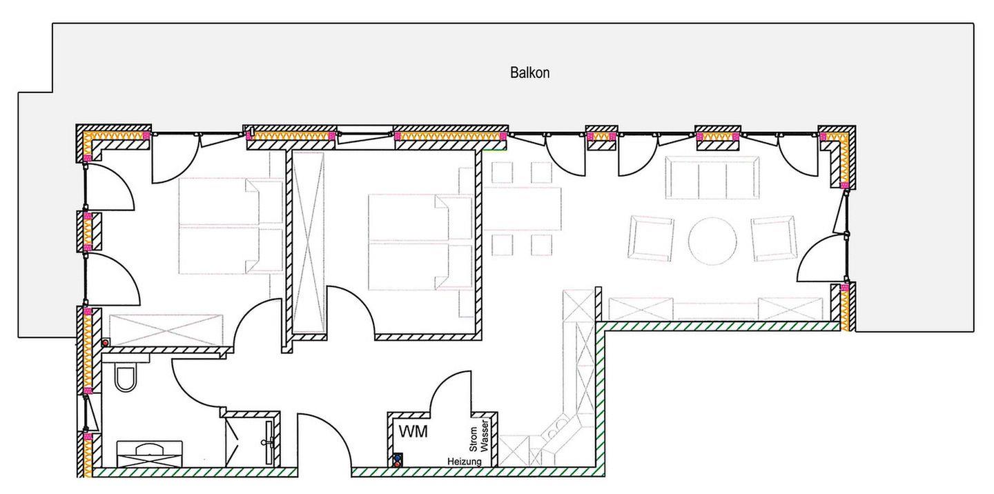 Die gesamte Wohnung verfügt über eine Fußbodenheizung.