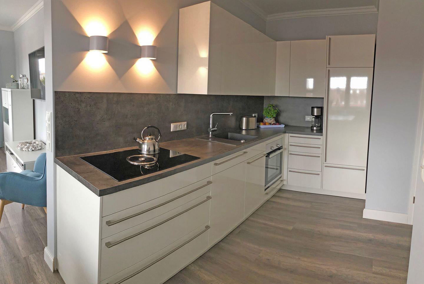 In dem modernen und mit viel Liebe eingerichtetem Wohn- Essbereich, werden Sie sich sicher wohl fühlen. Ein bequemes Sofa, mit Schlaffunktion, und ein Sessel stehen Ihnen in der Chill-Ecke mit TV zur Verfügung. An dem Esstisch, vor der hochwertig und komplett eingerichteten Küchenzeile, können Sie sich die Zeit mit netten Gesprächen oder leckerem Essen vertreiben.