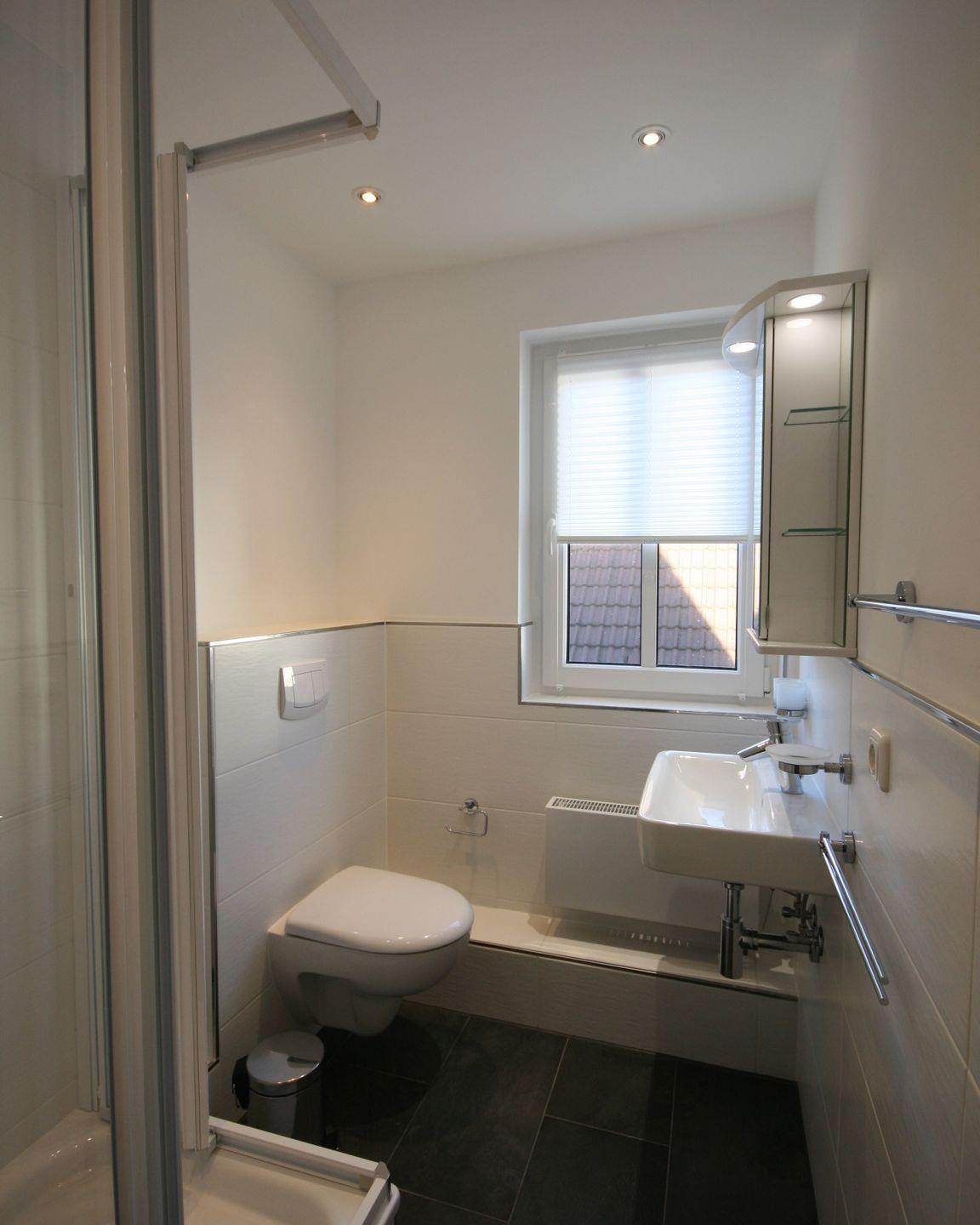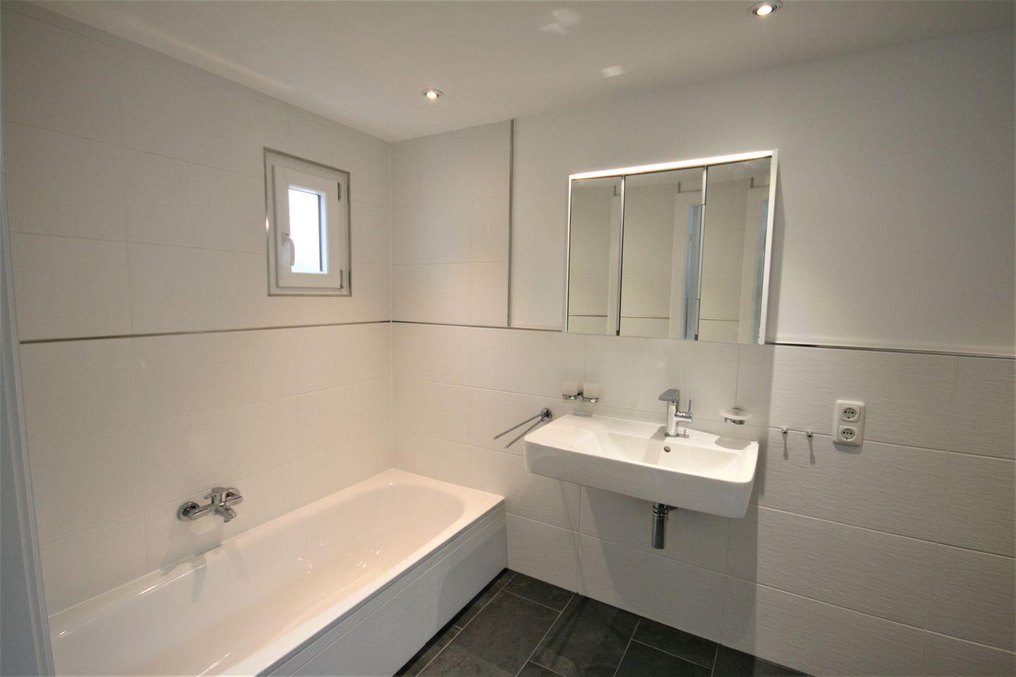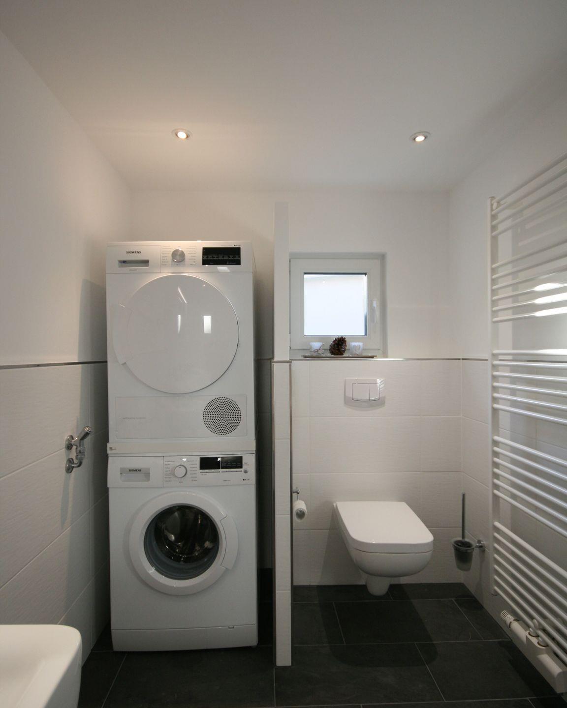 Ein Tageslichtbadezimmer mit Wanne, Waschmaschine und Trockner befindet sich ebenfalls im Erdgeschoss.