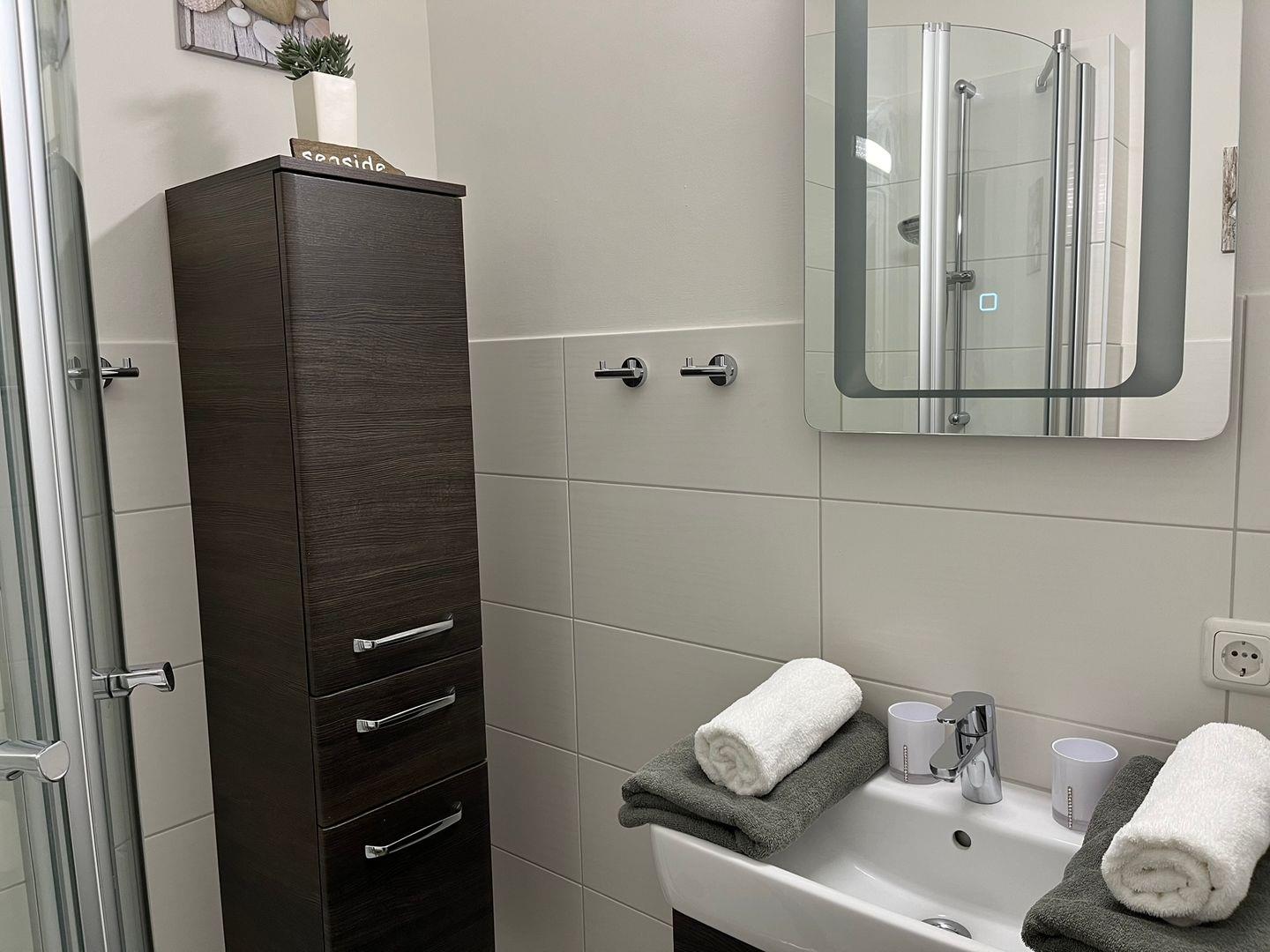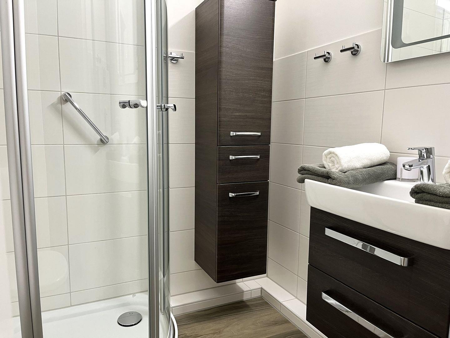 Ein ansprechendes neues Badezimmer mit Dusche rundet das Ganze ab.