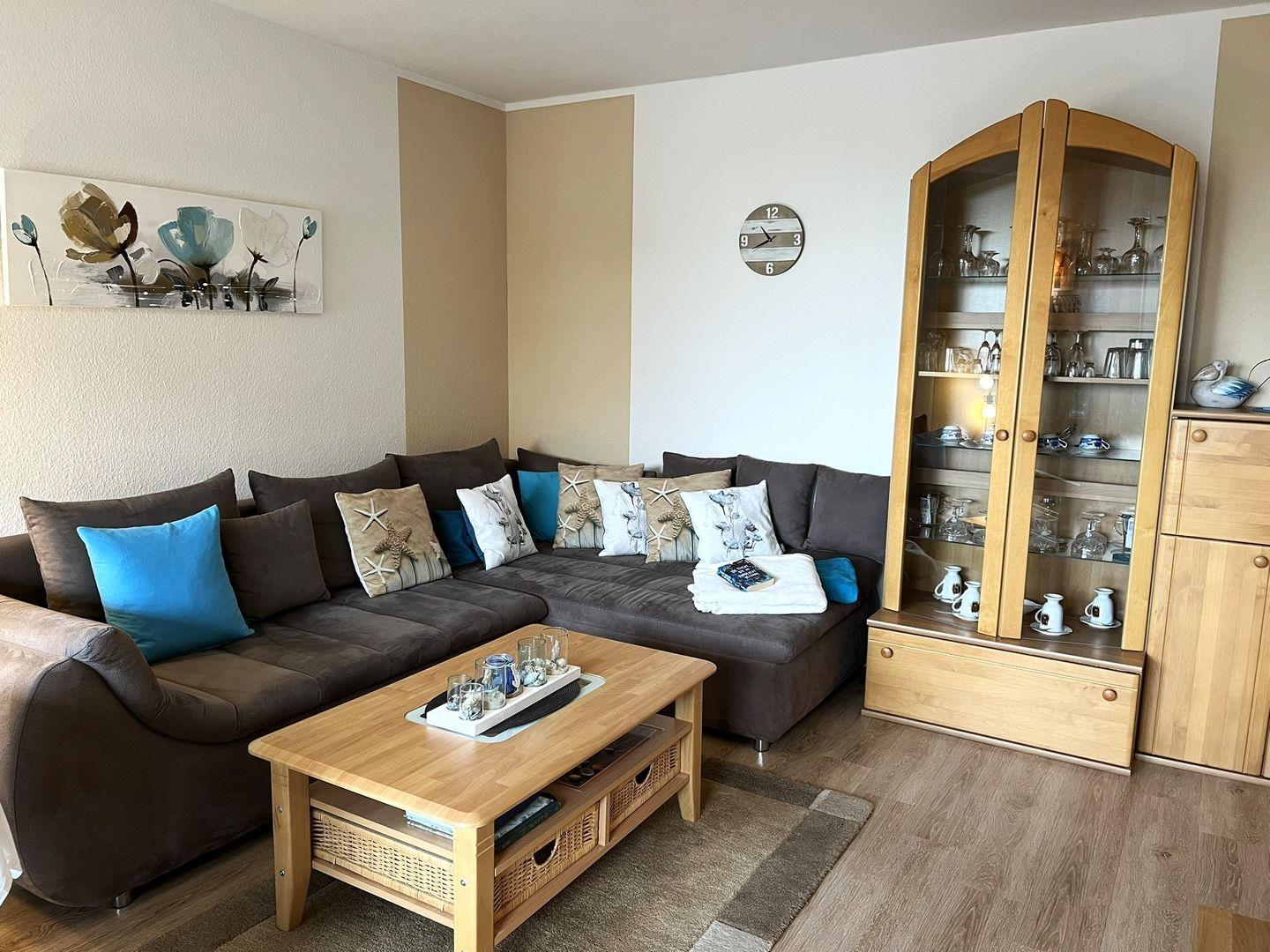 Der Süd-Balkon, dieser schön eingerichteten Ferienwohnung, für bis zu 3 Personen, im 1ten Stock des Hauses "Rainer", liegt rückwärtig und lädt zum Erholen ein. Genauso wie auch das helle, gemütliche Wohnzimmer, wo man es sich auf der großen Couchecke so richtig bequem machen kann. Die Couch kann auch zu einer dritten Schlafmöglichkeit ausgezogen werden.