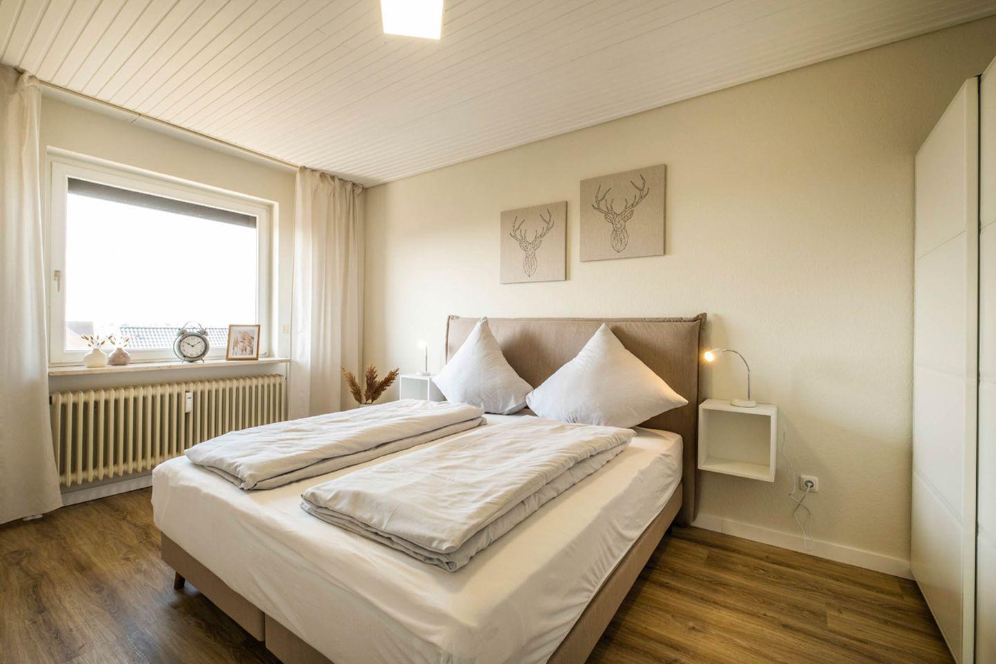 Das Schlafzimmer ist mit einem Doppelbett, einem Kleiderschrank ausgestattet.