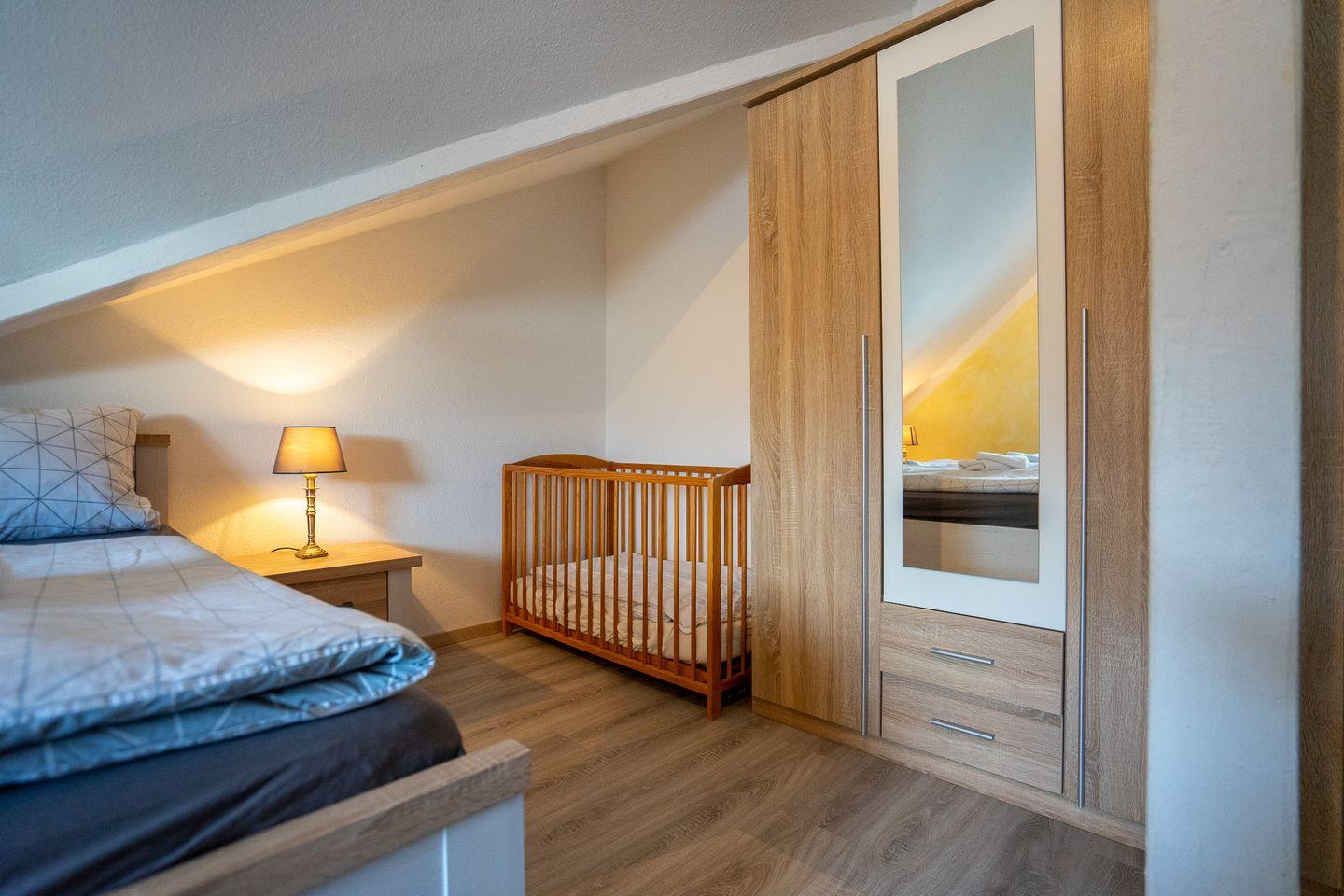 Die Wohnung verfügt über drei Schlafzimmer, jeweils mit einem Doppelbett. So finden sechs Personen entspannt Platz. Ein großer Komfort sind die zwei Badezimmer.