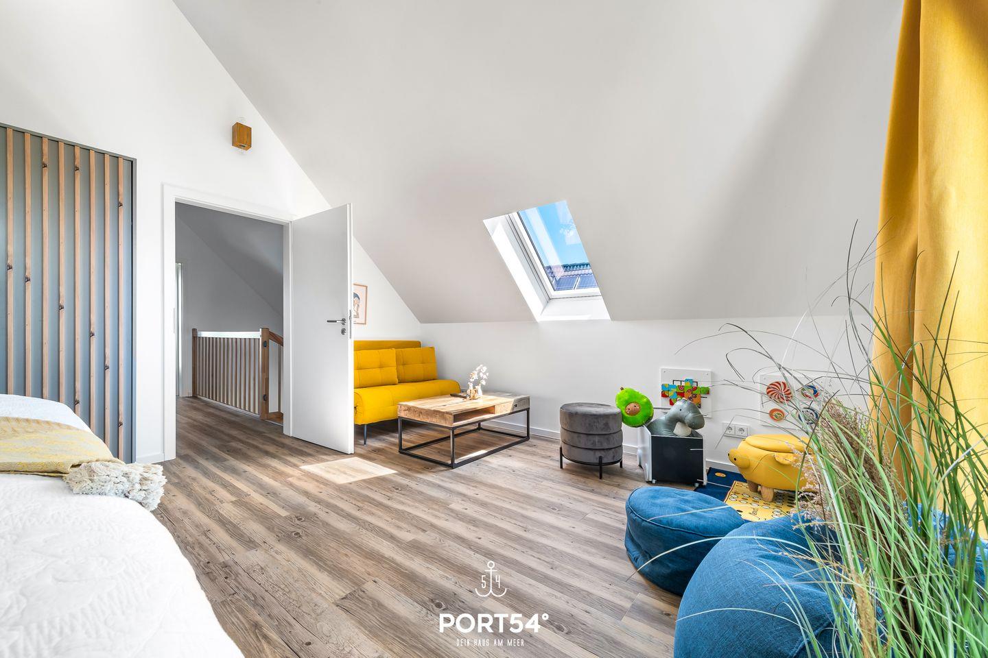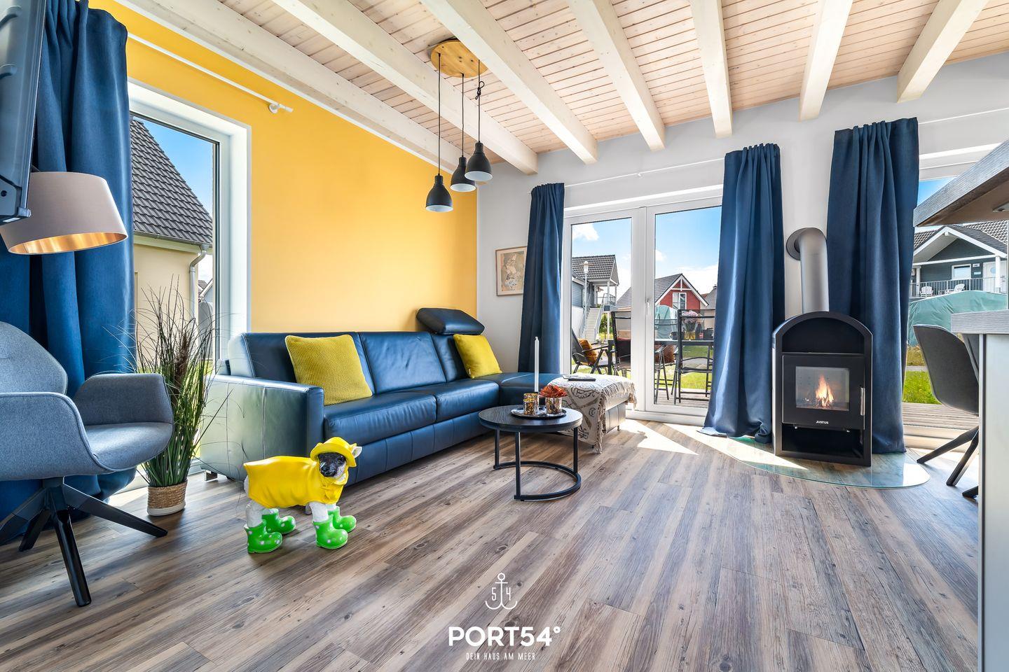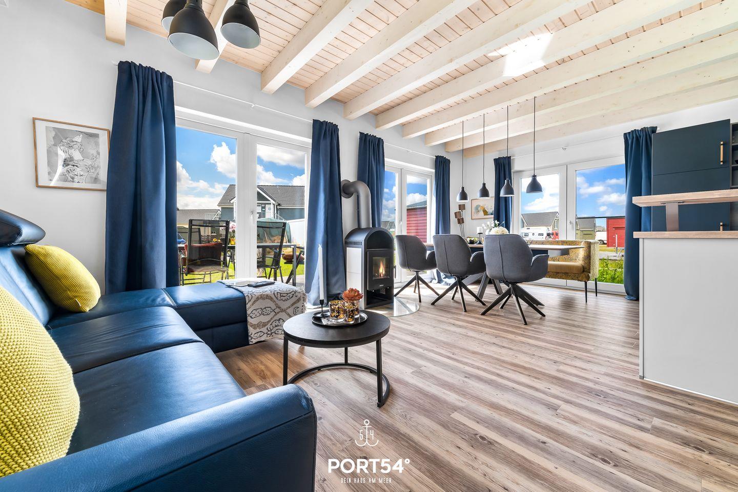 Auf 2 Etagen befinden sich insgesamt 3 Schlafzimmer, 2 Bäder, sowie eine offene Küche mit angrenzendem Wohn- und Essbereich und Kaminofen. Die Schlafzimmer sind mit 2 Doppelbetten und 2 Einzelbetten ausgestattet. Auf dem Schlafsofa im Wohnzimmer finden 2 Personen Platz. Das Duschbad im EG bietet eine finnische Sauna, im OG finden Sie ein Wannenbad. Die Terrasse ist vollmöbliert und mit einem Grill ausgestattet. Vor dem Haus befindet sich 1 PKW-Stellplätz und ein abschließbarer Fahrradschuppen.