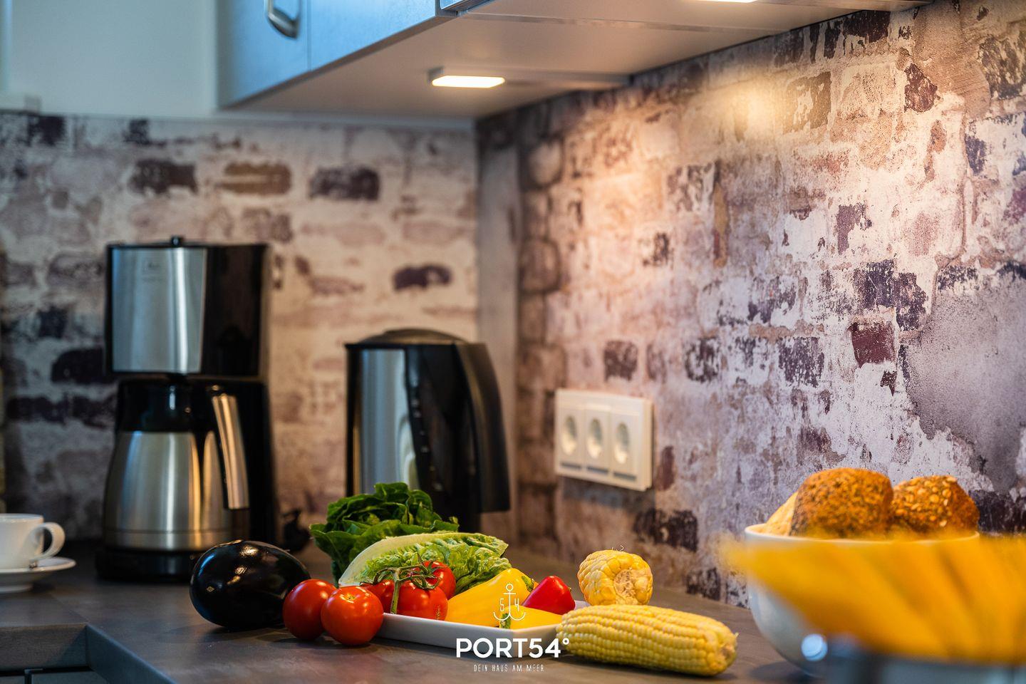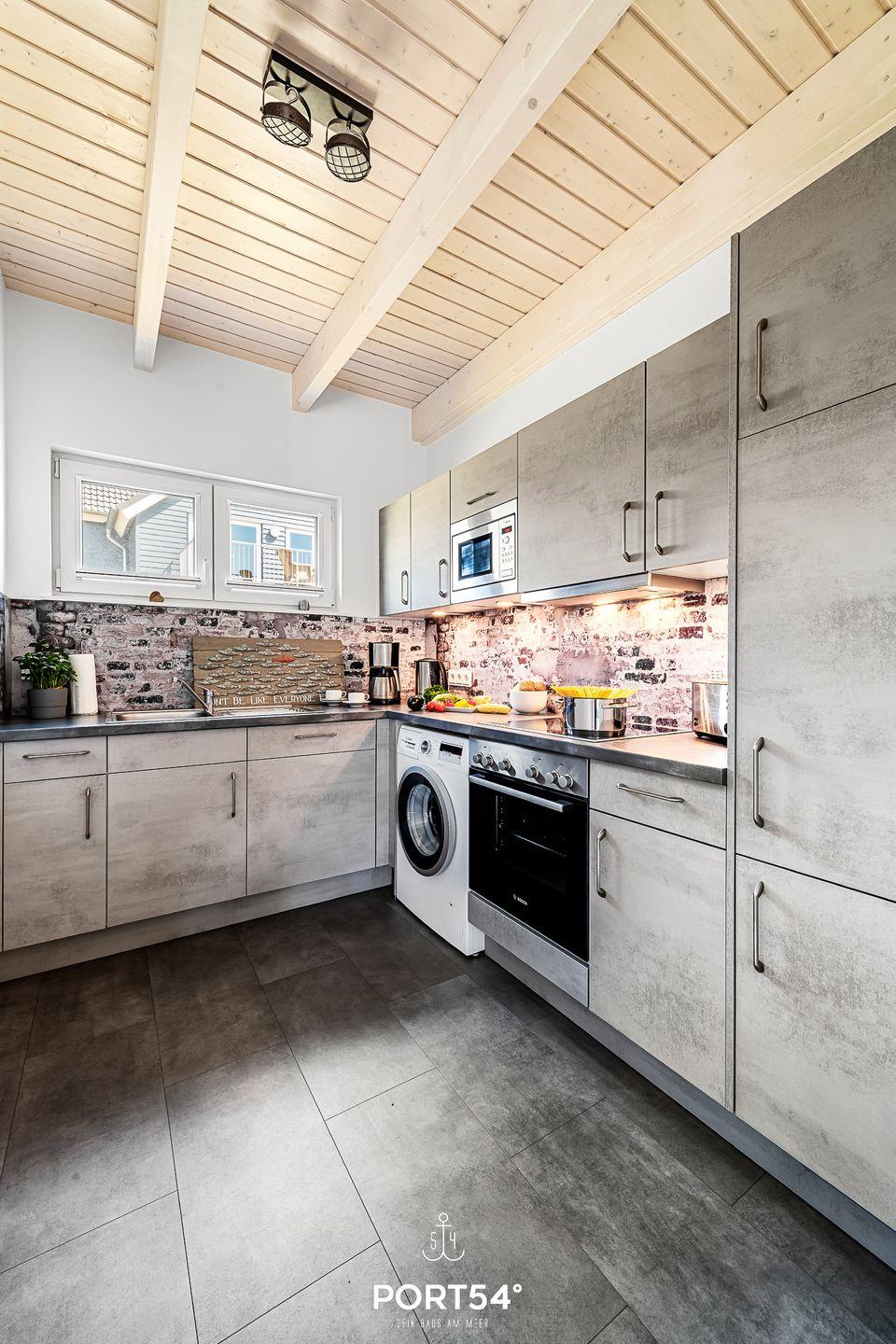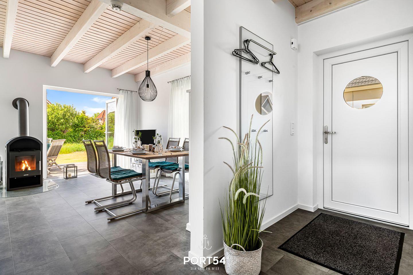 Im Erdgeschoss erwartet dich ein großzügiger Wohn- und Essbereich mit offener Küche, der zum gemeinsamen Kochen, Essen und Verweilen einlädt. Die voll ausgestattete Küche bietet dir alles, was du für einen entspannten Aufenthalt benötigst. Im Wohnbereich kannst du es dir auf dem gemütlichen Sofa bequem machen und vor dem Kamin entspannen – besonders an kühleren Tagen sorgt dieser für eine behagliche Atmosphäre.
