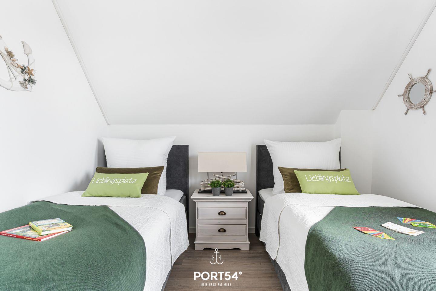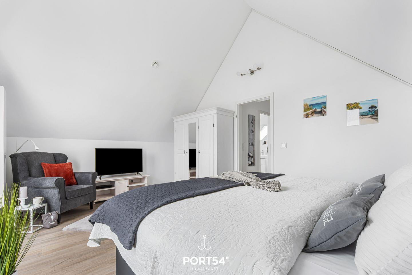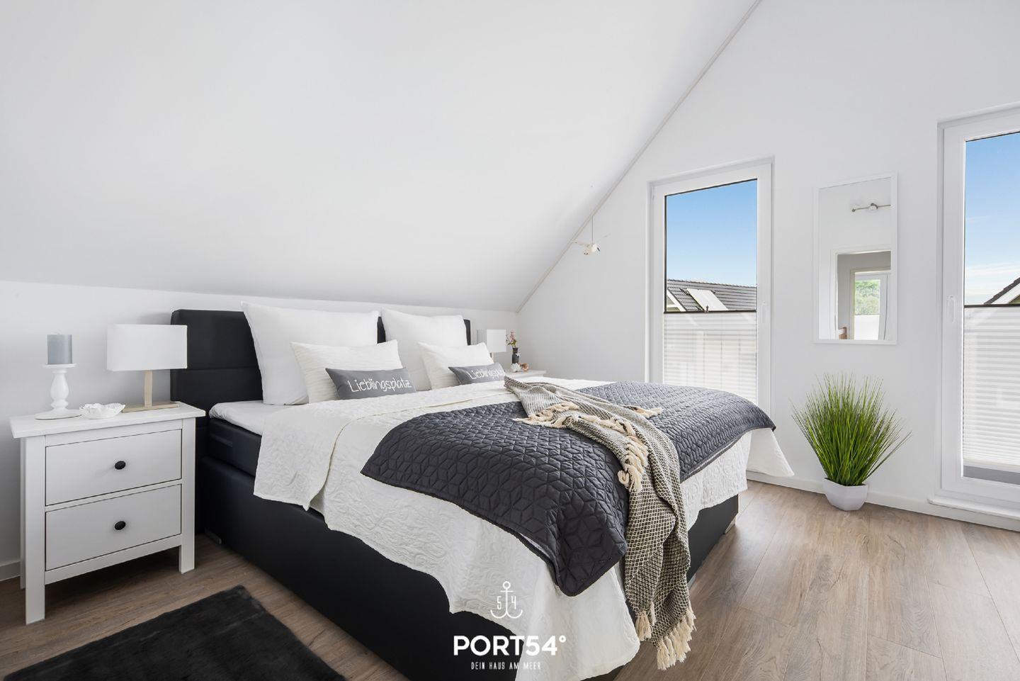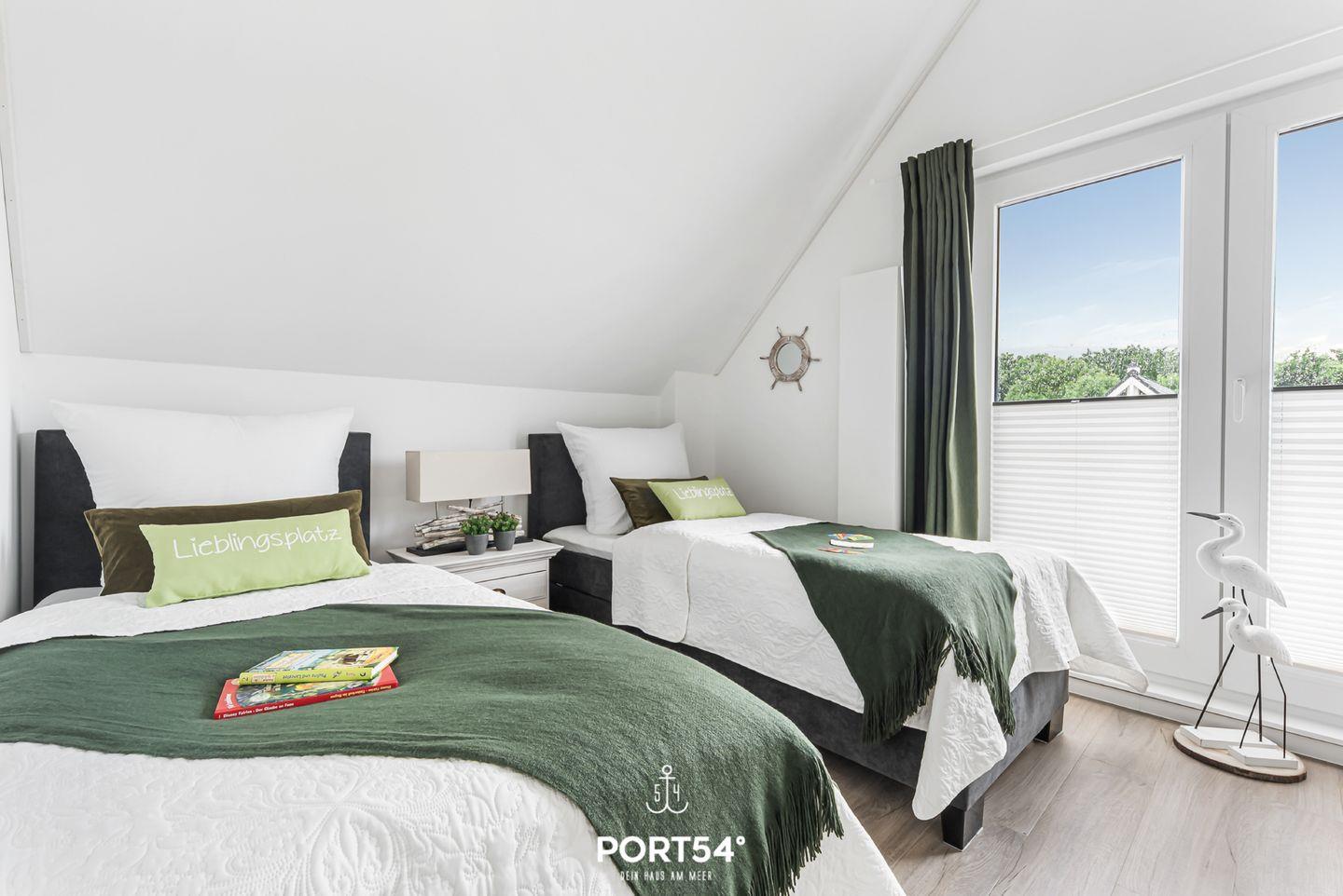 Im Obergeschoss erwarten dich zwei Schlafzimmer mit hochwertigen Boxspringbetten (1x Doppelbett, 1x zwei Einzelbetten), jeweils mit TV und ausreichend Stauraum. Ein weiteres Badezimmer mit Badewanne und Föhn sorgt für zusätzlichen Komfort. Für Familien stehen Kinderreisebett, Hochstuhl und Treppensicherung bereit.