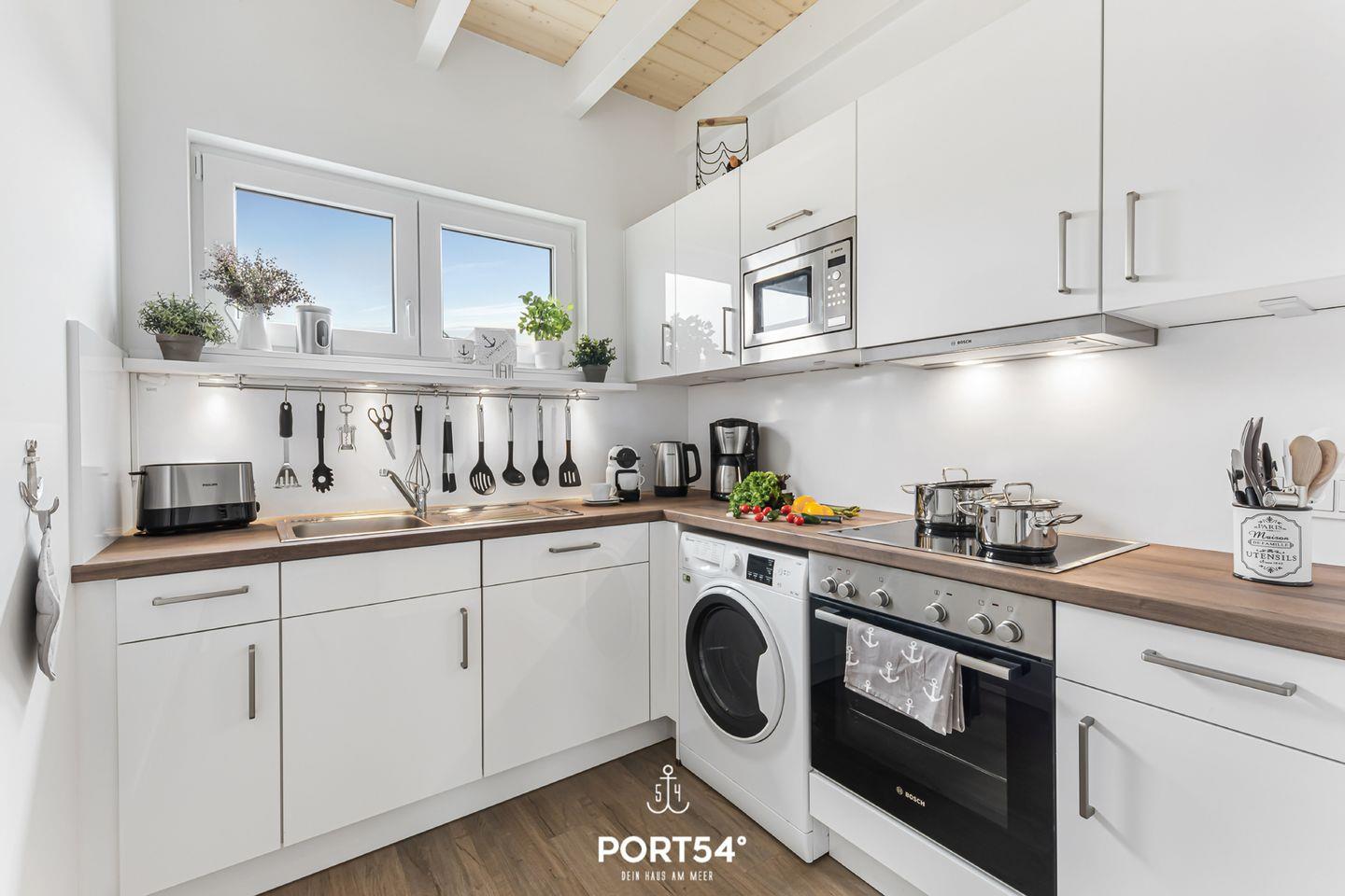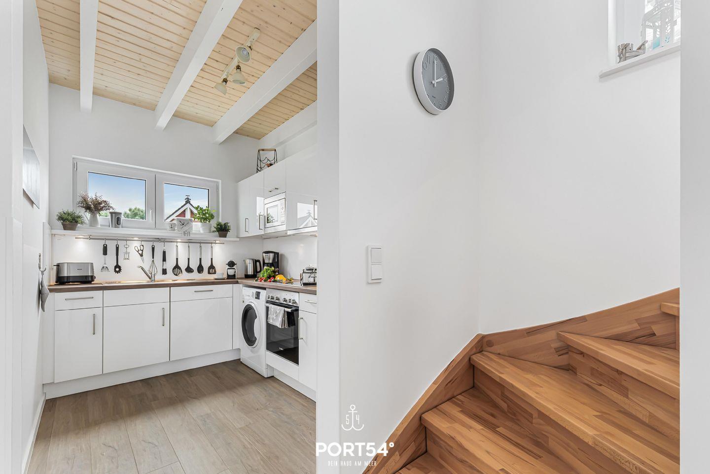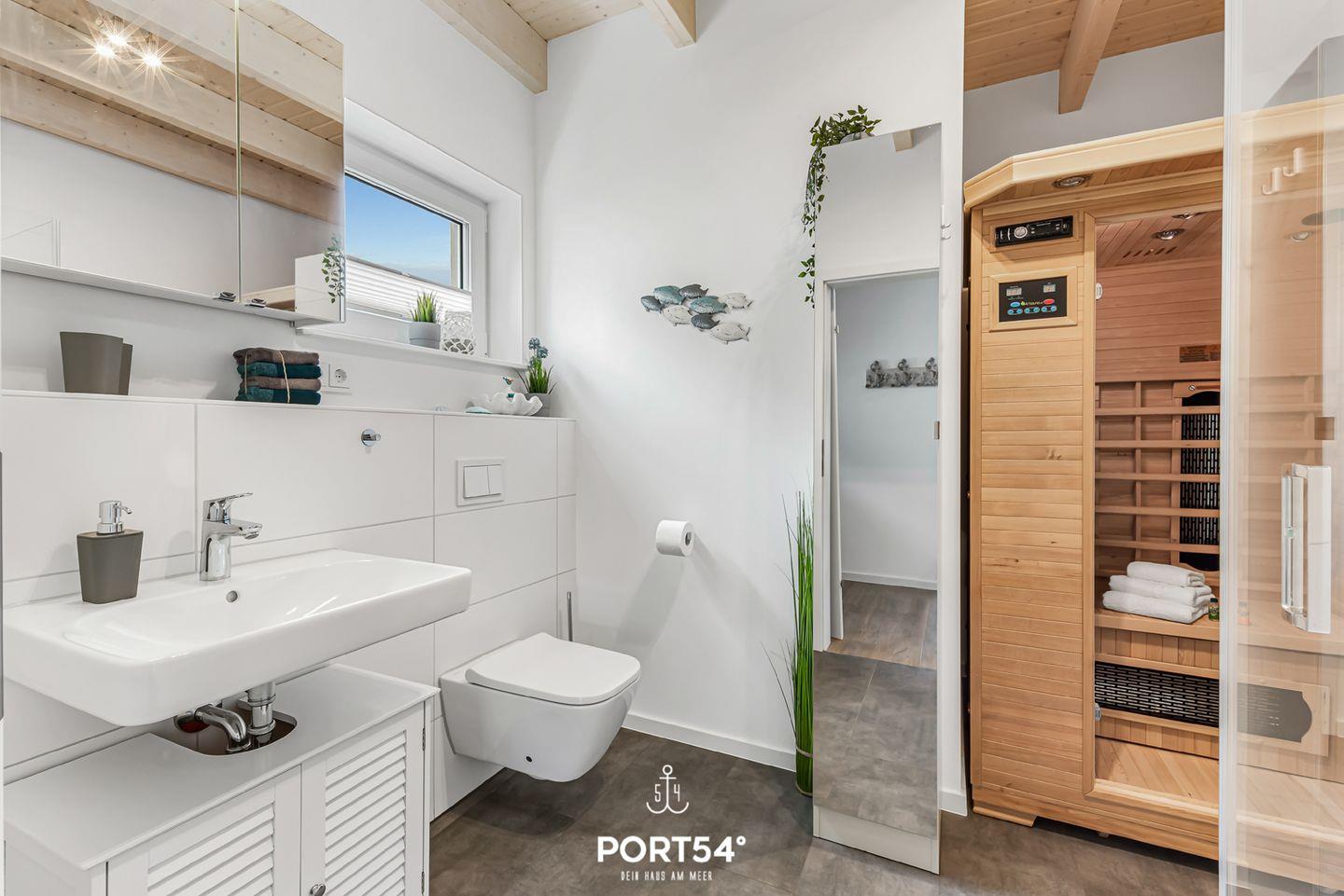 Die hochwertige, voll ausgestattete Küche lässt keine Wünsche offen – mit Geschirrspüler, Mikrowelle, Nespresso- und Filterkaffeemaschine, Wasserkocher sowie Waschtrockner. Im Erdgeschoss befindet sich außerdem ein modernes Bad mit ebenerdiger Dusche und Infrarot-Sauna – perfekt für entspannte Wellnessmomente.