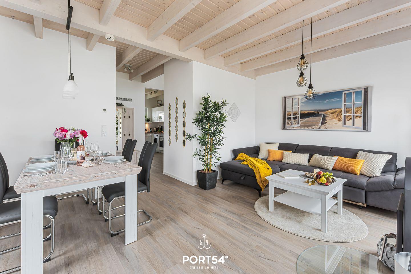 Ein Highlight für Familien ist der neue, moderne Spielplatz im Herzen des Resorts. Die Perlebucht erreichst du in nur wenigen Gehminuten – ideal für Strandtage, Wattwanderungen und Wassersport.