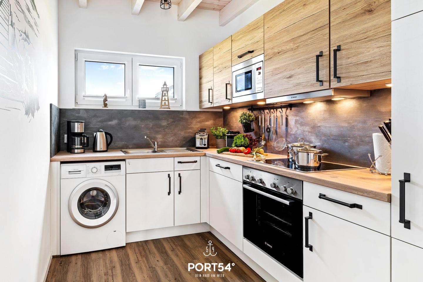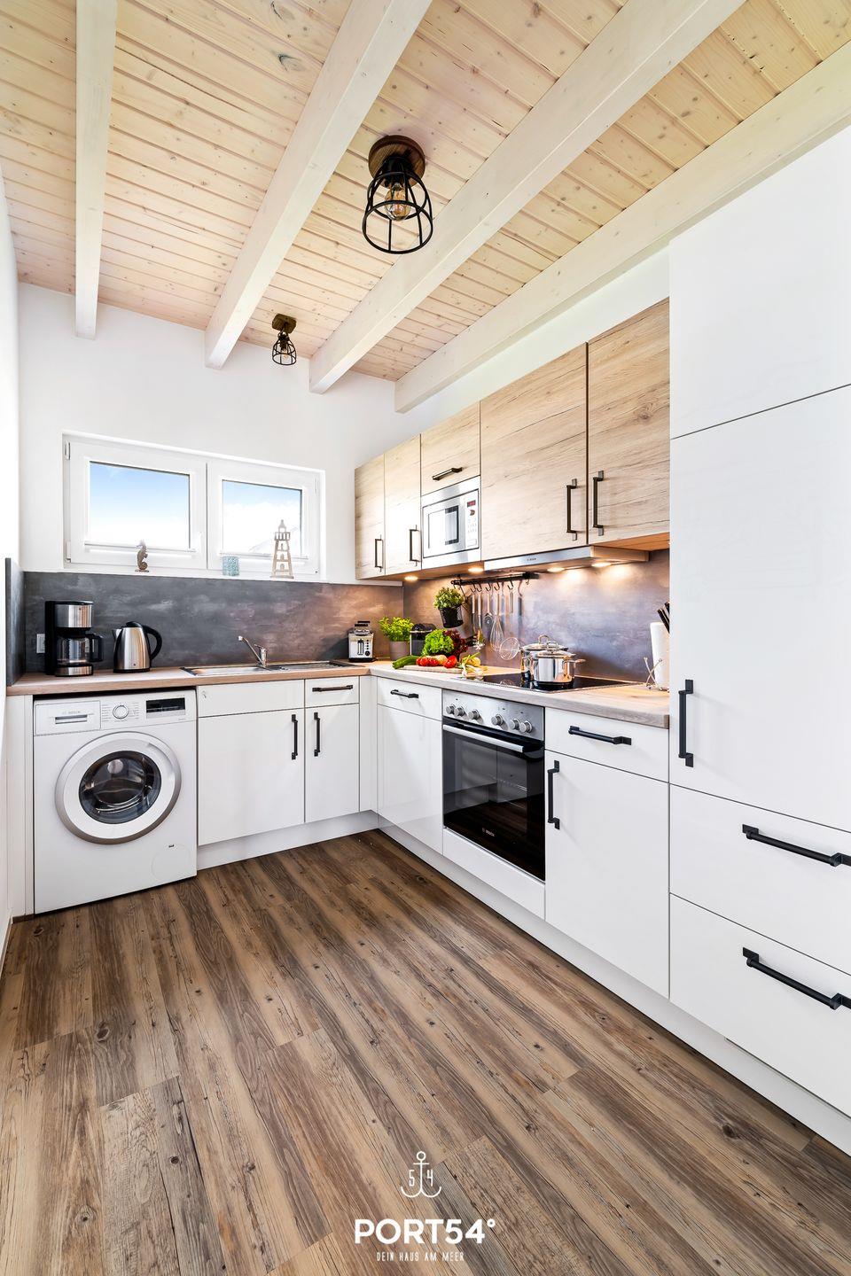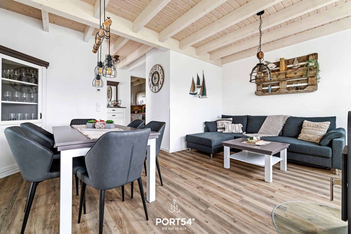 Im Erdgeschoss erwartet dich eine voll ausgestattete Küche, in der du alles findest, was du für entspannte Kochabende brauchst. Der offen gestaltete Wohn- und Essbereich ist lichtdurchflutet und lädt mit einer gemütlichen Schlafcouch, einem großzügigen Esstisch und einem Kamin zum Verweilen ein. Hier kannst du nach einem erlebnisreichen Tag an der Nordsee zur Ruhe kommen, ein gutes Buch lesen oder den Abend in behaglicher Atmosphäre ausklingen lassen.
